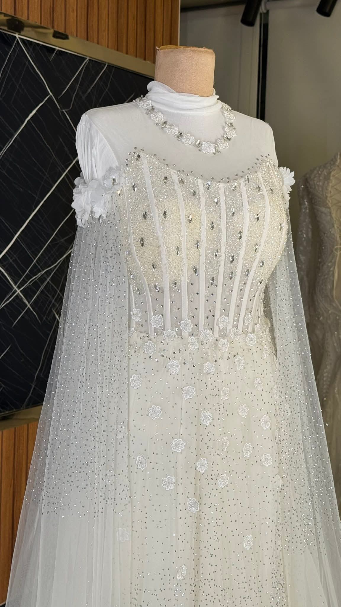 ومن التفاصيل اللي بتريح العروسة إن المكان عنده كمان مكملات للفستان زي الطرحة، الجيبون، أو كاب بسيط لو محتاجة تضيف لمسة معينة على شكلها. وده بيختصر عليها وقت كبير بدل ما تدور في اكتر من مكان.