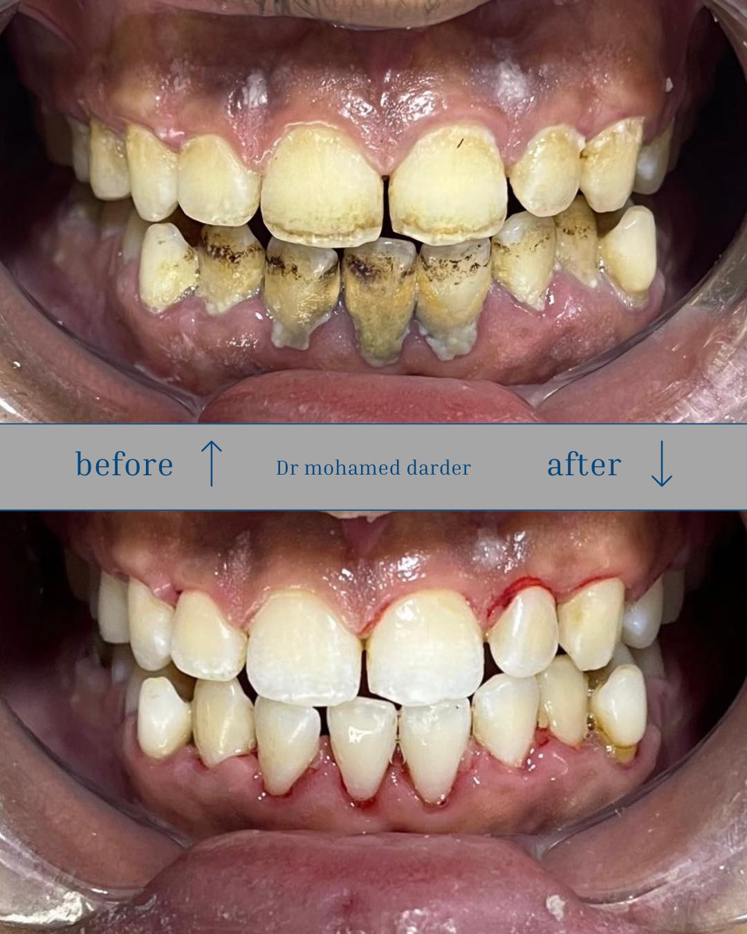 بعد الفحص بييجى دور تنظيف الأسنان العميق. في D Dental Lounge بيستخدموا جهاز الموجات فوق الصوتية اللي بيكسر الرواسب الجيرية والبلاك بلطف من تحت اللثة وعلى السطح من غير ما تحس بأي ألم. بعد كده بينتقلوا لمرحلة التلميع بمعجون طبي مخصوص بيرجع لمينا الأسنان نعومتها وبيخلي سطحها لامع كأنك لسه طلعت من أول جلسة تنظيف في مركز احترافي. خلال الجلسة هتاخد نصايح عملية عن أفضل نوع فرشاة ومعجون وخيط تنظيف، وكمان طريقة الاستخدام الصح في البيت عشان تحافظ على النتيجة لأطول مدة.