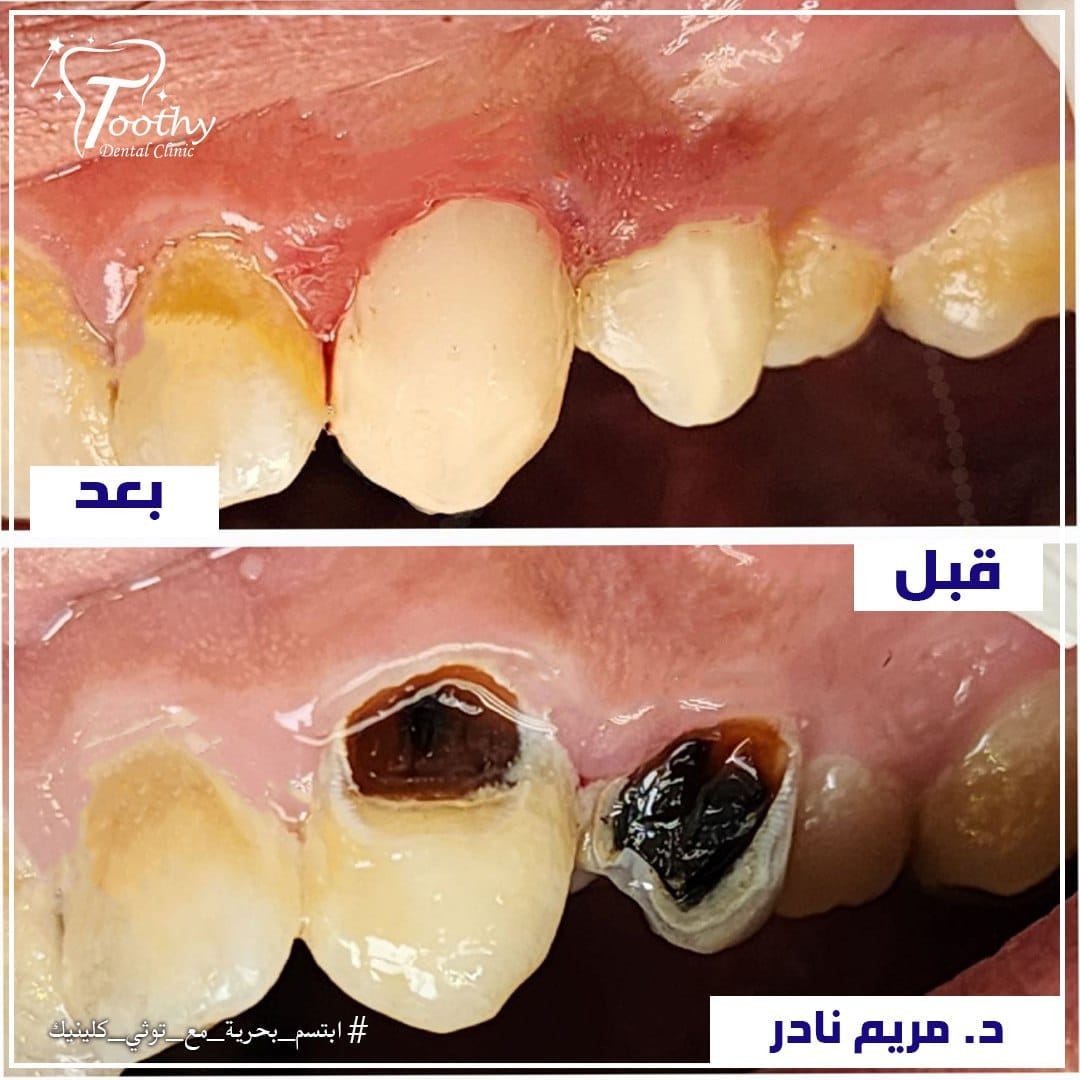 لو اكتشف الدكتور وجود تسوس بسيط أو تجاويف صغيرة، في توثي كلينك بيعالجوه بحشوات تجميلية كومبوزيت لونها مطابق للسن الأصلي، والإجراء كله بيتم تحت مخدر موضعي سريع المفعول عشان متحسش بأي وجع. وبعد الحشو بيعملوا أشعة متابعة بسيطة عشان يتأكدوا من ثبات الحشوة واستقرارها، وده بيضمن نتيجة تدوم وفم صحي بعيد عن الانزعاج.
