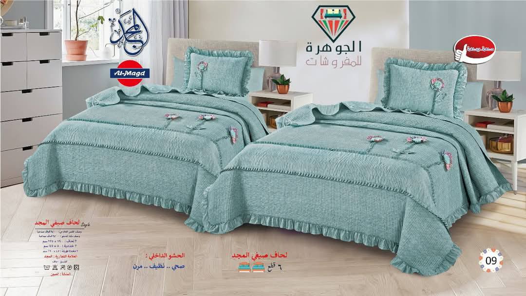 هتلاقي باقات تجهيز سرير (ملايات + غطاء لحاف + مخدات) بأسعار موفرة، وخصومات موسمية على الألحفة والبطاطين وأطقم المناشف. في مرونة في الدفع وتقسيط بدون فوائد في فترات معينة، وكمان أسعار خاصة للطلبات الكبيرة للشقق المفروشة والمشروعات.