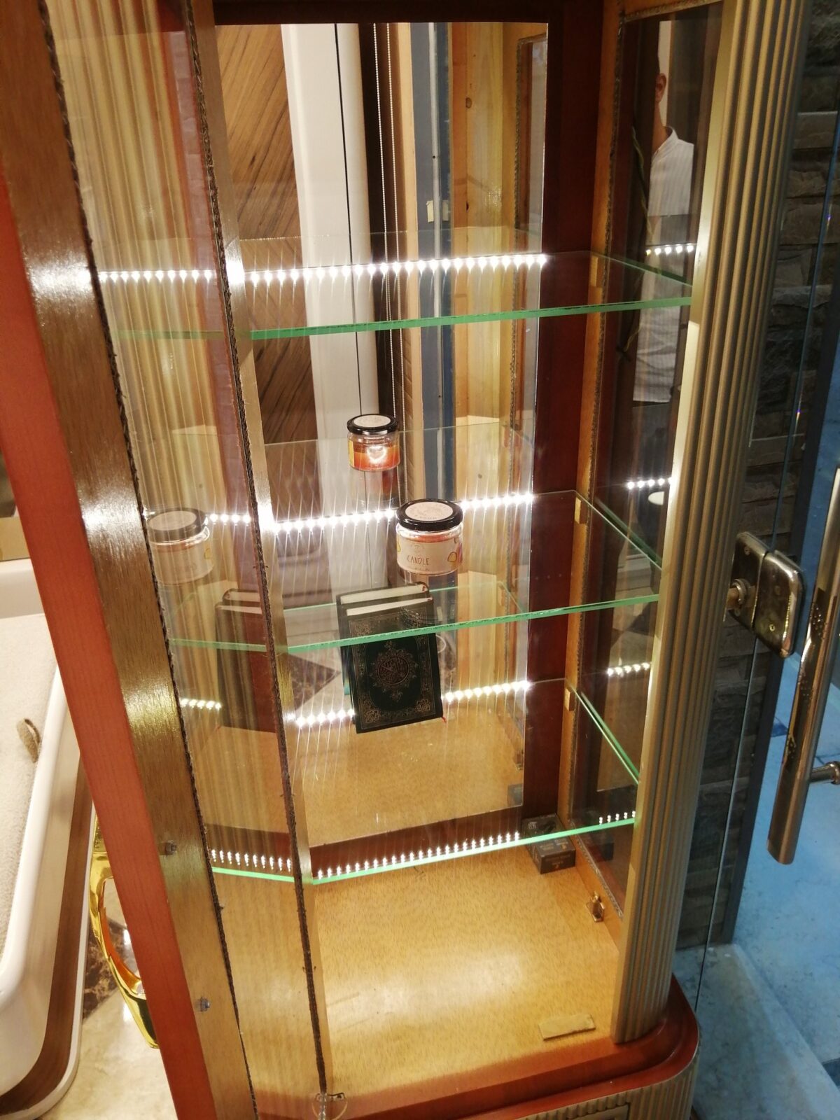 لو بتحب تضيف بوفيه أو نيش كديكور عملي، ورد مهران لك قطع Push-to-Open بواجهات نظيفة وأرفف خشب وزجاج مدعمة بإضاءة LED داخلية تبرز أطقم السفرة كأنها في معرض.