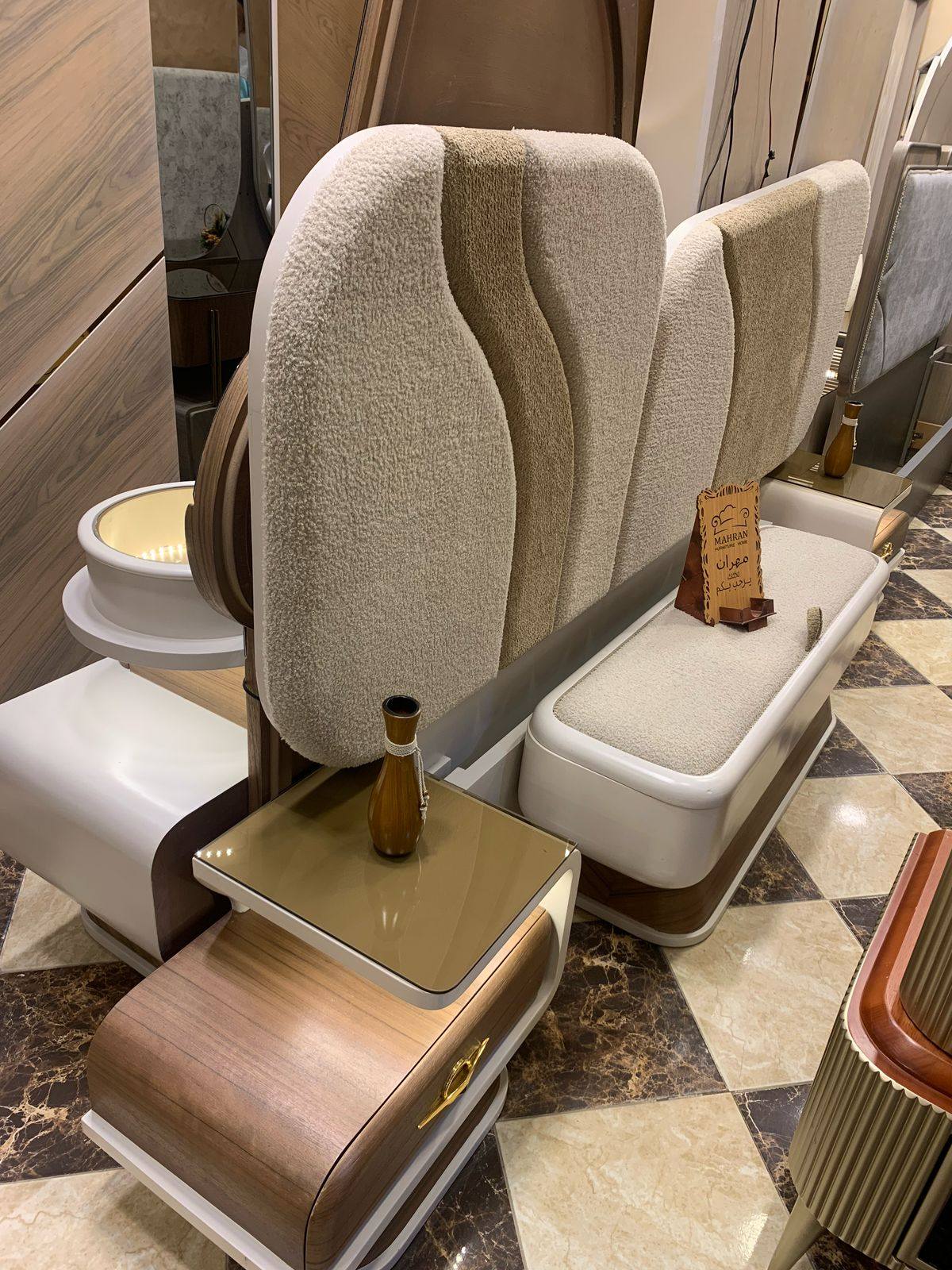 مهران للأثاث مهتم بأوض النوم أكتر من مجرد سرير ونيش. السرير Low-Profile قاعدة خشب متينة (زان أو كونتر مصبوغ) وتحتها درج تخزين هيدروليكي يخفي منك البطاطين واللحاف بعيد عن الفوضى. لو المساحة ضيقة، في موديلات Bed Frame بحامل سرير تقدر تحل مكان النيش بإرفف صغيرة للكتب والديكور.