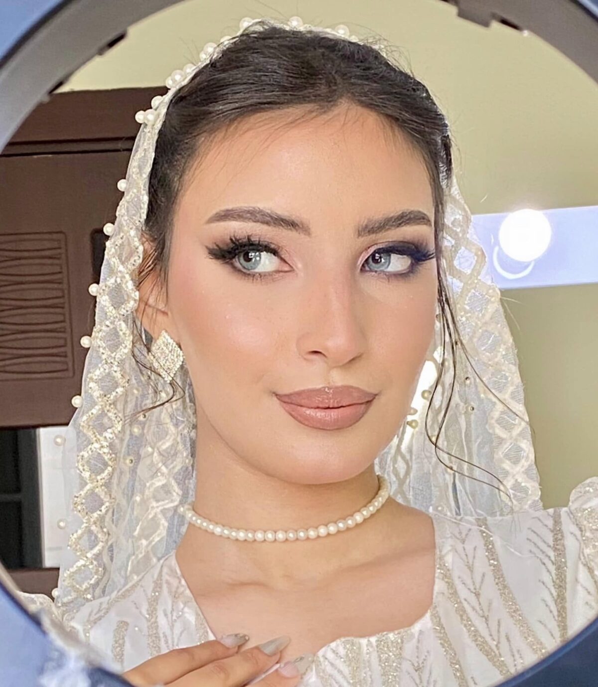 من أهم مميزاتها كمان اهتمامها بالعيون. بتعرف تبرز جمال العين من خلال دمج الألوان بطريقة متناسقة واختيار رموش مناسبة تدي شكل طبيعي وراقي من غير ما يكون مبالغ فيه. وده بيخلي العين هي أكتر حاجة ملفتة في اللوك كله.