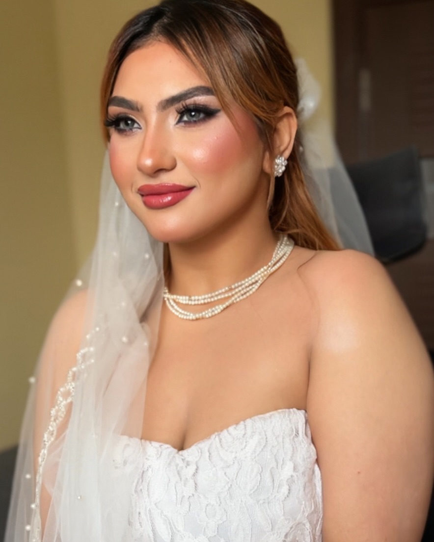 في تجهيز العرايس، شيماء بتركز على تفاصيل كل عروسة بشكل خاص. من اختيار كريم الأساس المناسب للبشرة، لدمج الألوان اللي تليق مع لون الفستان وطبيعة الإضاءة في القاعة، والنتيجة بتكون إطلالة متكاملة تدي للعروسة ثقة وراحة في يومها الكبير. مكياجها للعرايس دايمًا بيتسم بالنعومة والثبات عشان يفضل معاهم من أول الفرح لحد آخر لحظة.
