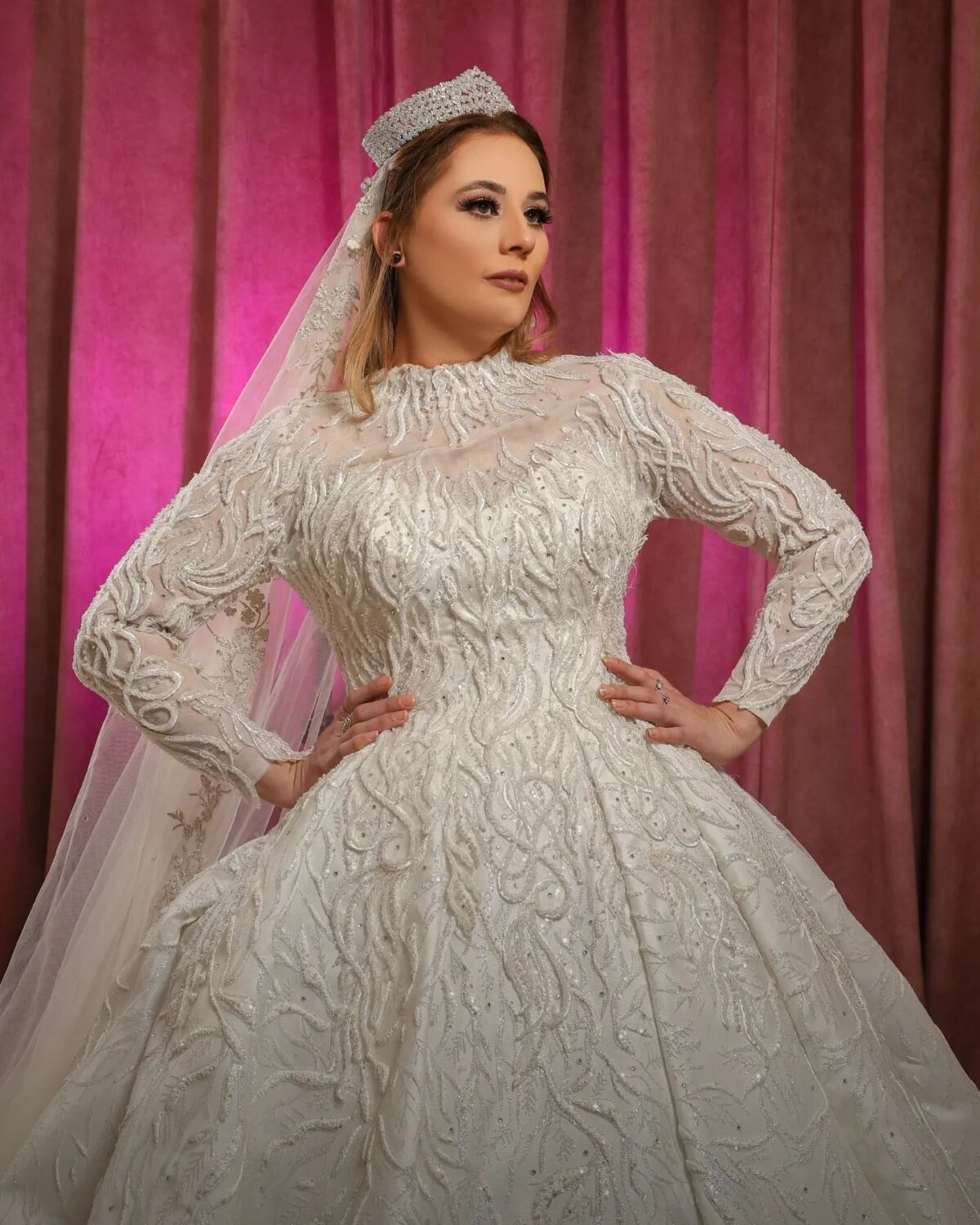التشكيلة في أتيليه حليم معمولة بذوق يراعي اختلاف الأجسام والميول. في موديلات ملكية منفوشة للبنات اللي بتحب الدخول المهيب، وفي قصّات ناعمة تبرز الخصر وتدي قوام متوازن من غير مبالغة، وكمان أشكال بسيطة رايقة لو بتحبي الإحساس الهادئ اللي بيعتمد على نظافة القَصّة أكتر من أي تفاصيل تانية. تقدري تجربي أكمام طويلة أو كتف ساقط أو حمالات رفيعة، وتشوفي بنفسك إيه اللي بيطلعك أحلى قدام المراية. المهم إنك هتلاقي مساحة حقيقية للتجربة، وتغيير رأيك، ومقارنة موديلات لحد ما تحسي إن واحد فيهم بيحكيلِك أنتِ.