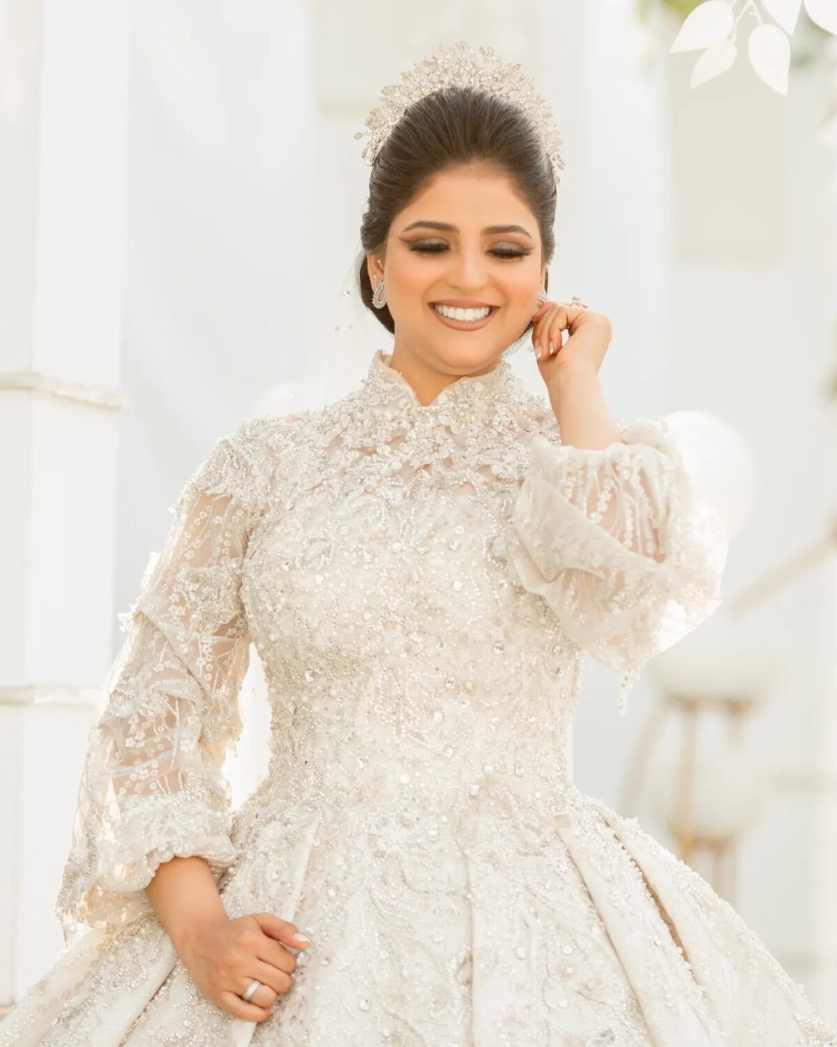 لو عندك فكرة أو موديل شايفاه على السوشيال أو متصوّراه في خيالك، تقدري تاخديها معاكي، وفريق أتيليه حليم هيترجمها لقرارات عملية. ممكن يطلع نفس الروح على موديل جاهز مع تعديلات بسيطة، أو يتعمل شغل خاص حسب طلبك لو حابة حاجة تخصّك. ودايمًا فيه مساحة تضيفي لمسة شخصية تغير الإحساس كله، زي شكل الكم، درجة الأبيض اللي تليق على بشرتك، طول الذيل، أو تفصيلة رقيقة عند الخصر.