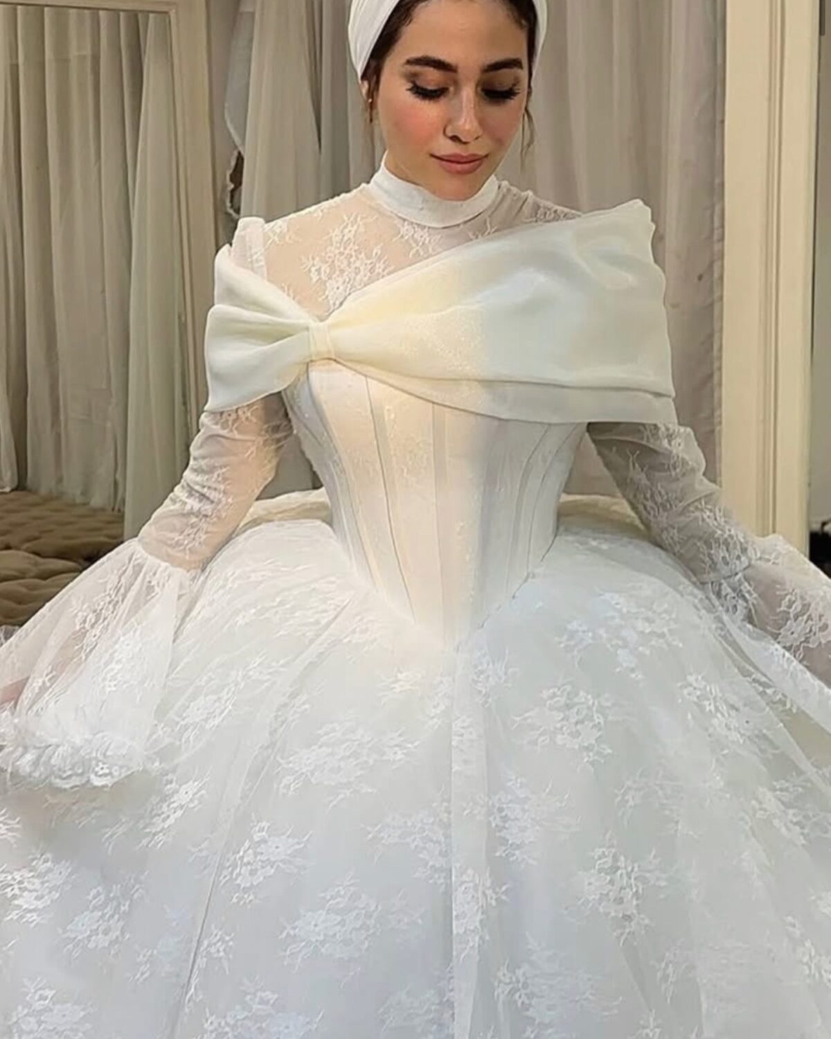 اتيليه دينا التركي مش بيعتمد على بهورة التفاصيل بقد ما بيعتمد على نظافة القصّة وجودة التنفيذ. التركيز دايمًا على إن الفستان يقعد مظبوط من أول اليوم لآخره، تبقي مرتاحة في الحركة والتصوير والرقصة الأولى من غير ما تفكري في تعديل أو دبوس. عشان كده بتلاقي اهتمام بالتفاصيل الصغيرة اللي بنستهين بيها أحيانًا زي توازن الطول، ثبات الكتف، شكل الخصر، وخامة البطانة المريحة على الجلد. لمسات بسيطة بتدي فرق كبير في إحساسك بالفستان طول اليوم.