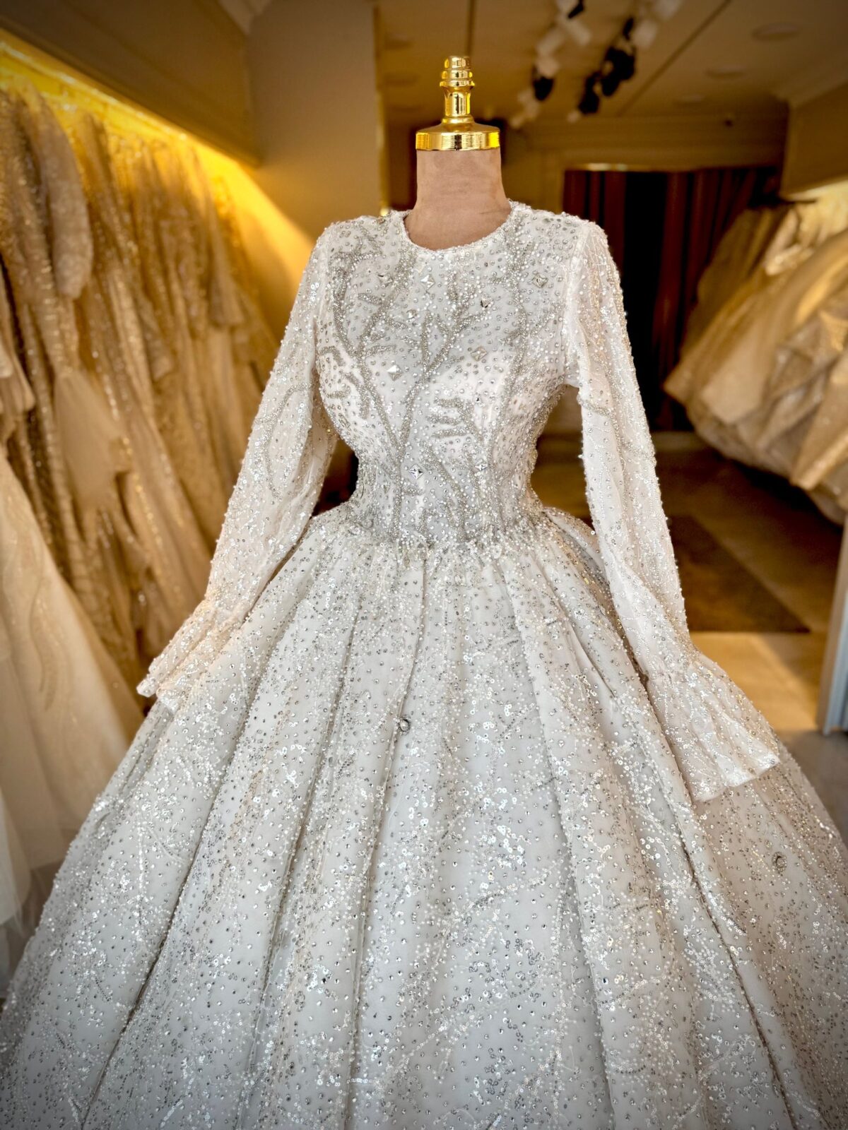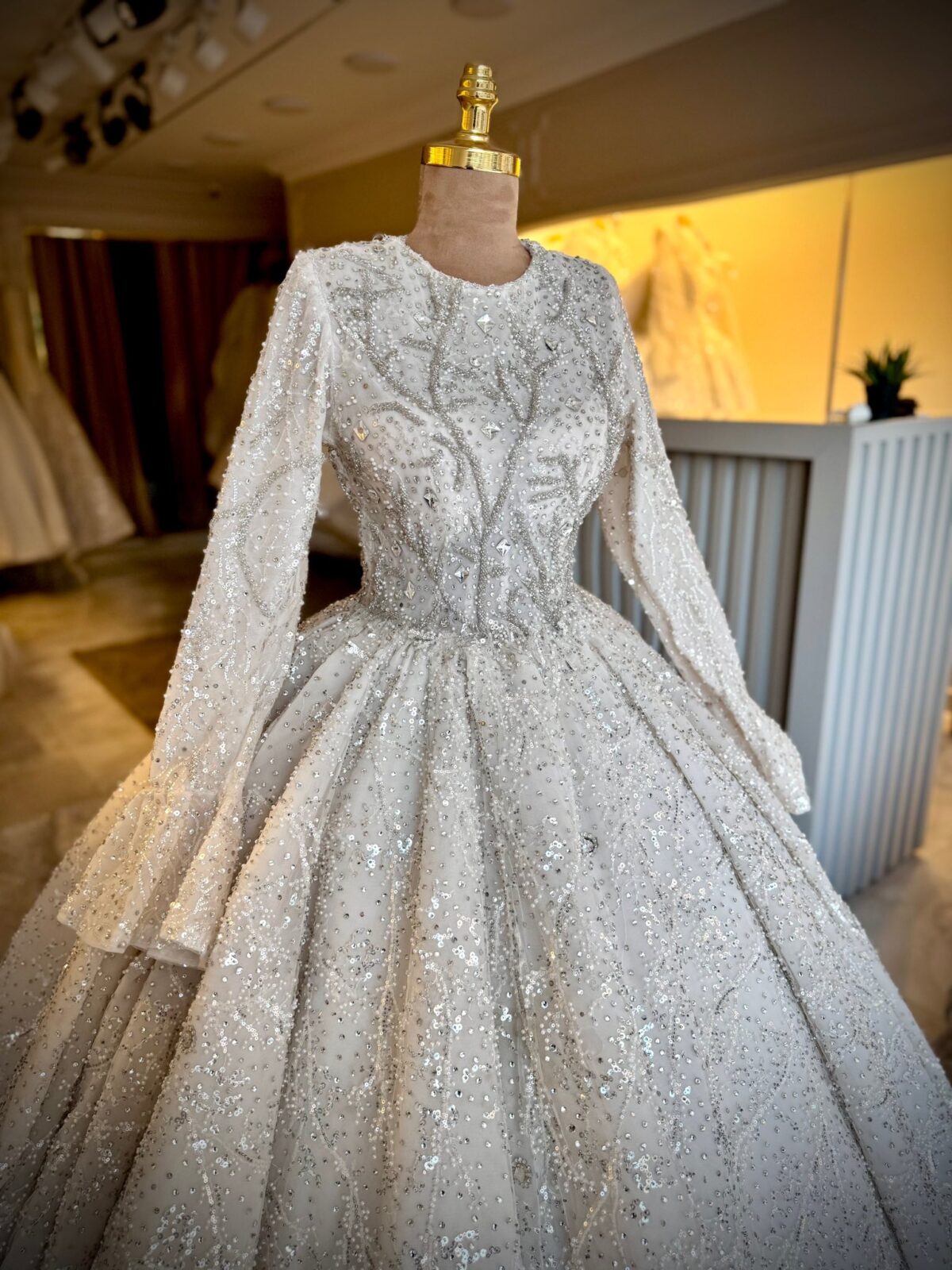 لو عندك في بالك فكرة معينة أو moodboard من صور موديلات عجبتك، تقدري تتكلمي عنها بكل بساطة. الهدف إن الفستان النهائي يعكس ذوقك وشخصيتك، سواء اختارتي قطعة جاهزة واتعدلت على مقاسك أو طلبتي شغل خاص في حدود اللي يناسبك. ومهما كان اختيارك، بيكون في مساحة تضيفي لمسة شخصية بسيطة تغيّر الإحساس كله، زي تغيير شكل الكم، درجة البياض، طول الذيل، أو تفاصيل رقيقة على منطقة الخصر.