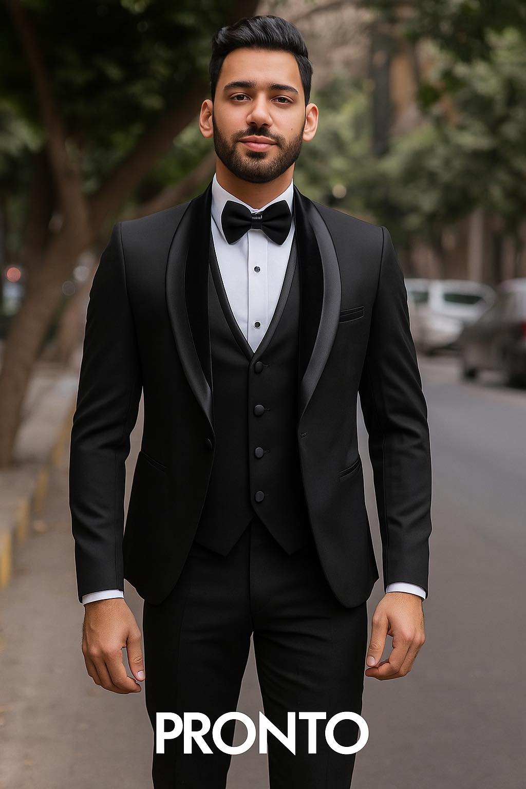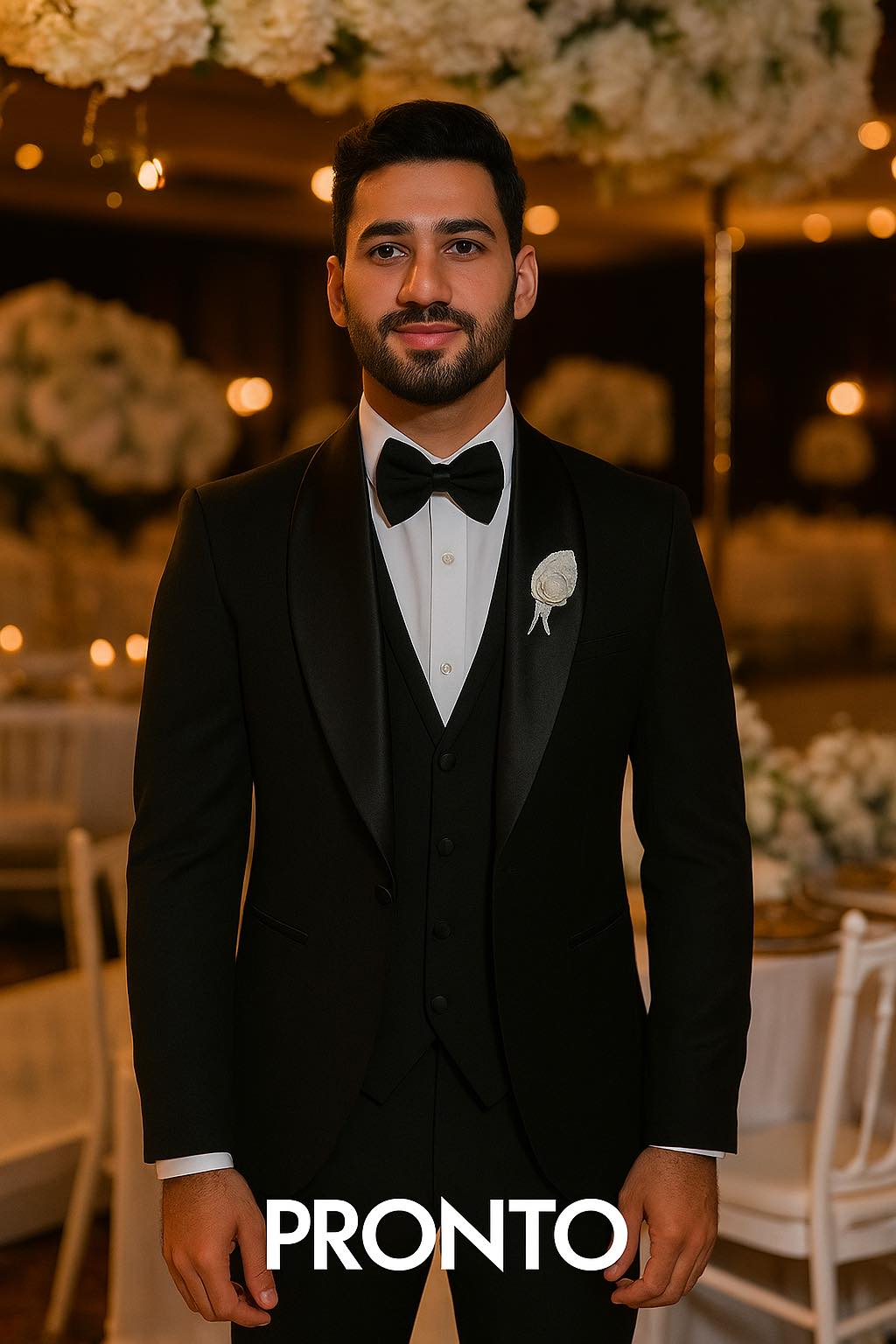 الموديلات في P R O N T O متنوعة وبتناسب كل الأذواق. هتلاقي بدل كلاسيك بخامات قوية وألوان ثابتة زي الأسود والكحلي والرمادي، ودي بتناسب العريس اللي بيدوّر على شكل رزين ومضمون في يوم الفرح. وفي نفس الوقت عندهم موديلات مودرن بقصات سلم وسكيني تناسب الشباب اللي عايزين شكل عصري وشيك يبان في الصور ويخلي الإطلالة مختلفة.