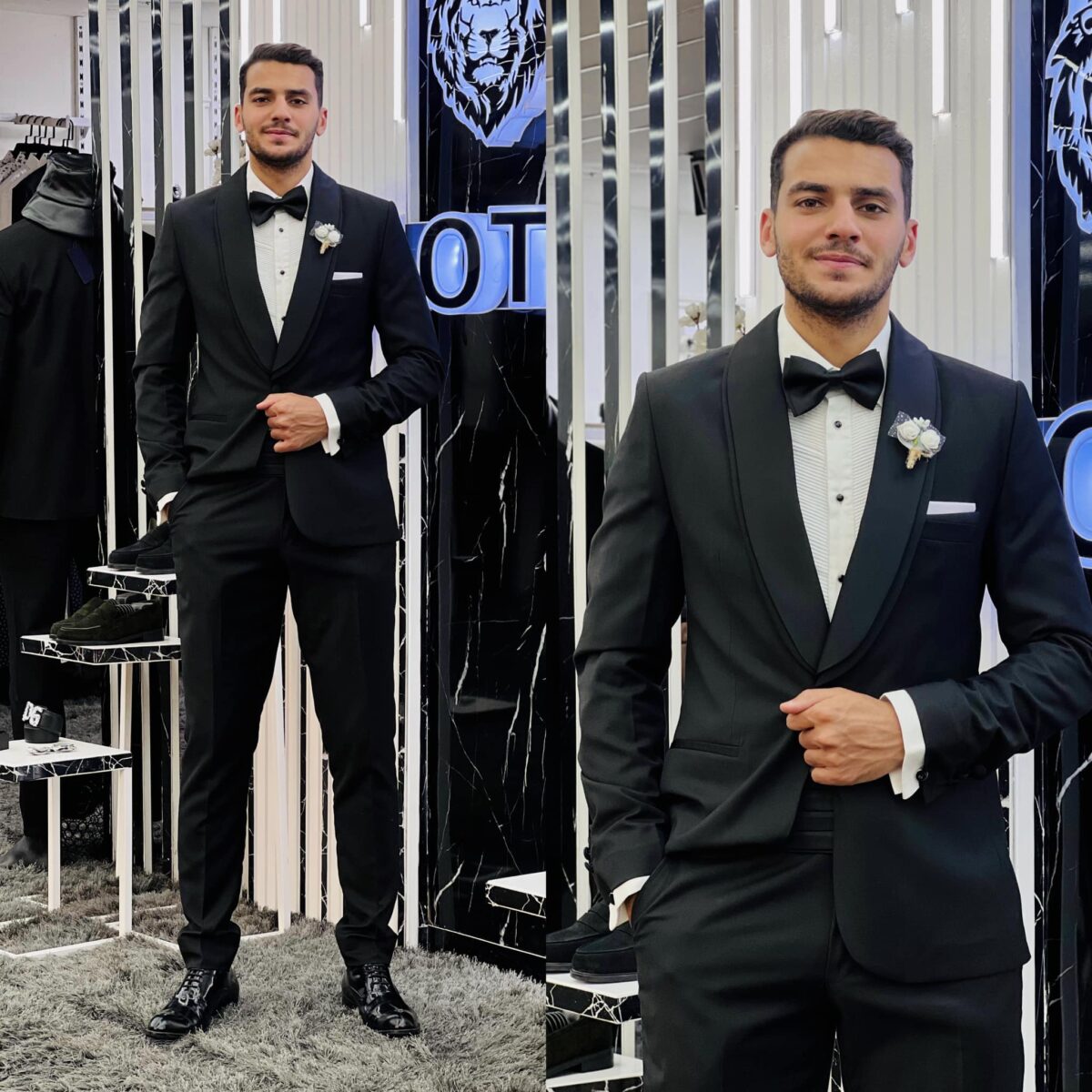 المحل منظم بطريقة تسهّل عملية التسوق، مع إضاءة مثالية بتبرز كل تفاصيل التصميم بوضوح، وده بيساعدك تتخذ قرارك بكل ثقة وانت متأكد من إنك اخترت البدلة اللي تناسبك.