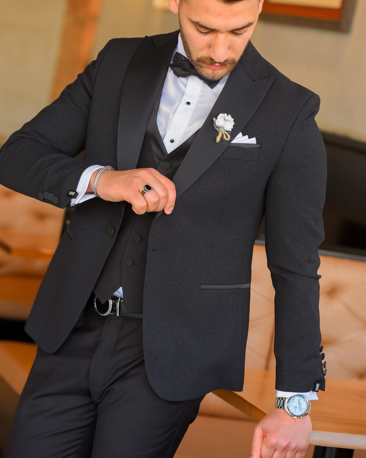 المميز في Giovanni إن الموديلات عنده بتجمع بين الكلاسيك والمودرن بشكل متوازن. لو العريس بيحب الستايل الهادئ والتقليدي هيلقي بدل بألوان محترمة زي الأسود والكحلي والرمادي بدرجات مختلفة. ولو بيحب الستايل العصري فهتلاقي قصات سلم وسكيني بتدي شكل رشيق وشيك يناسب جلسات التصوير والفرح نفسه. التنوع ده بيخلي أي عريس يلاقي حاجة تعبر عن شخصيته من غير ما يحتار.