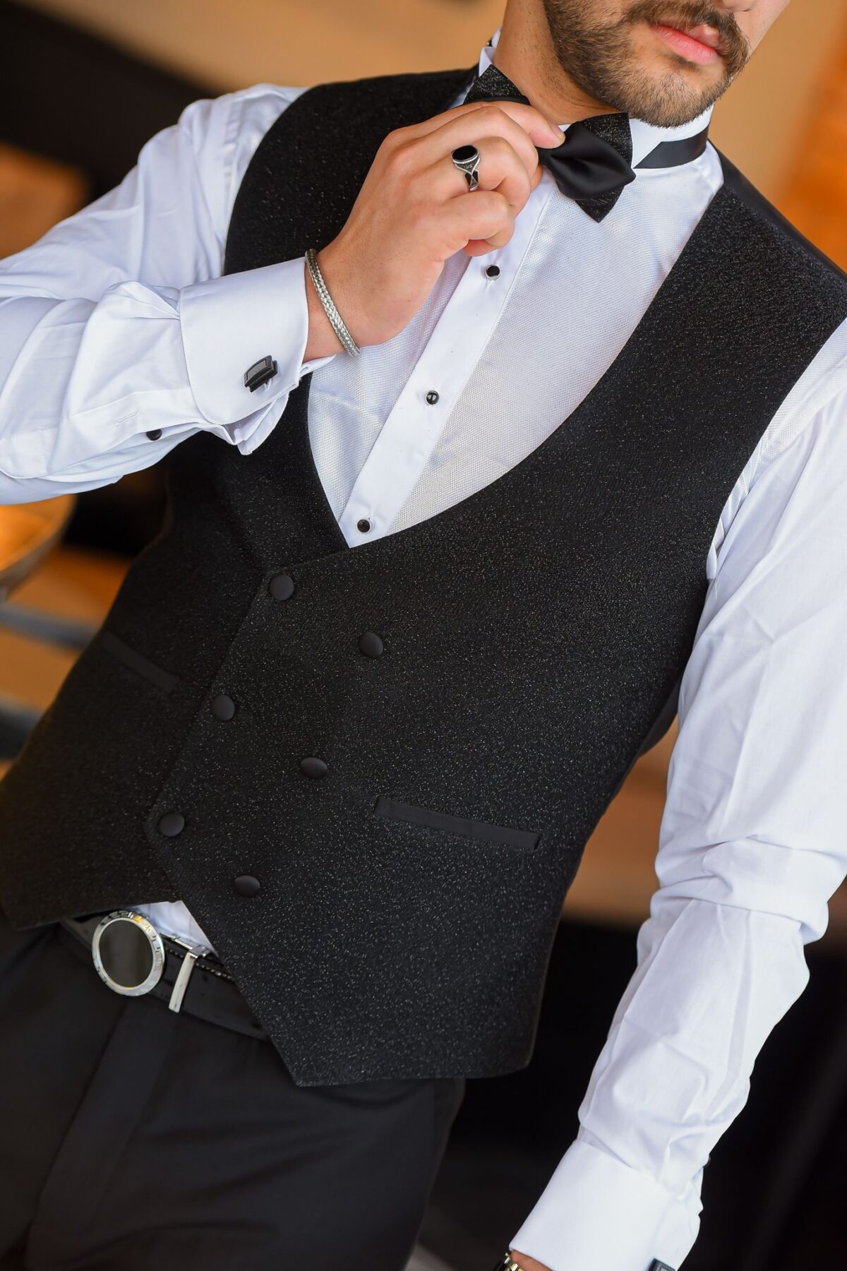 واحدة من أهم الحاجات اللي Giovanni بيمتاز بيها هي تظبيط المقاسات بدقة. بعد ما العريس يختار الموديل اللي عجبه، الفريق هناك بيبدأ يظبط تفاصيل البدلة من طول الكم، شكل الكتف، طول الجاكيت، لحد البنطلون. النقطة دي بتفرق جدًا في الشكل النهائي لأنها بتخلي البدلة تبان كأنها معمولة مخصوص للعريس، وده بيبان في الصور ويدي راحة أكبر في اللبس في يوم طويل زي الفرح.
