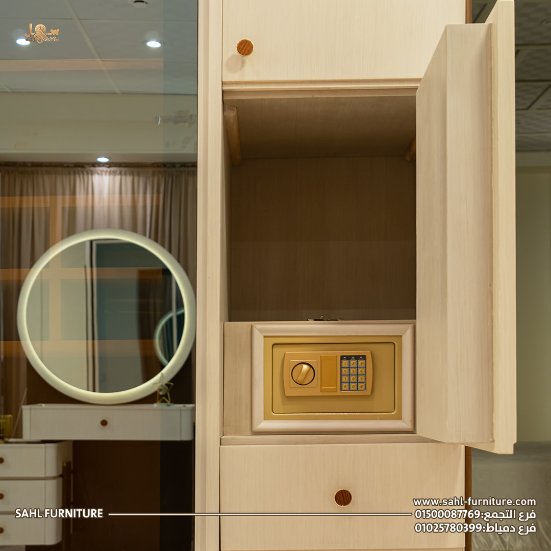 اللي بيميز سهل للأثاث إن التصميمات عندهم معتمدة على الخطوط البسيطة اللي بتمشي مع أي ديكور جديد من غير ما تبقى تقيلة على العين. أوض النوم هناك معمولة من خشب متين وتشطيب نظيف، السرير شكله أنيق وخفيف، والدولاب متقسم تقسيمة عملية سواء جرار أو بمفصلات. التقسيم جوه الدولاب معمول بفكرة يسهّل الاستخدام اليومي ويستغل كل مساحة من غير زحمة.