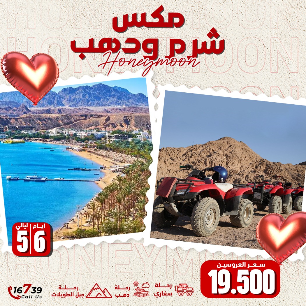 كمان الشركة بتقدم خدمات قبل الفرح لأي حد داخل على مرحلة الجواز وعايز يغير جو من ضغط التحضيرات. ممكن تنظم داي يوز أو رحلة قصيرة داخل مصر علشان العرسان يريحوا أعصابهم قبل الزفاف. الأماكن دي ممكن تكون في العين السخنة، الساحل الشمالي، أو الفيوم، وبتتنظم بنفس جودة الرحلات الكبيرة اللي الشركة مشهورة بيها. الفكرة دي بتخليهم يدخلوا على الفرح بنفسية مرتاحة وطاقة إيجابية.
