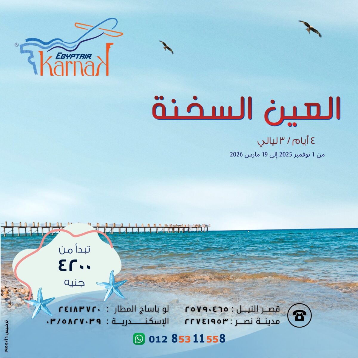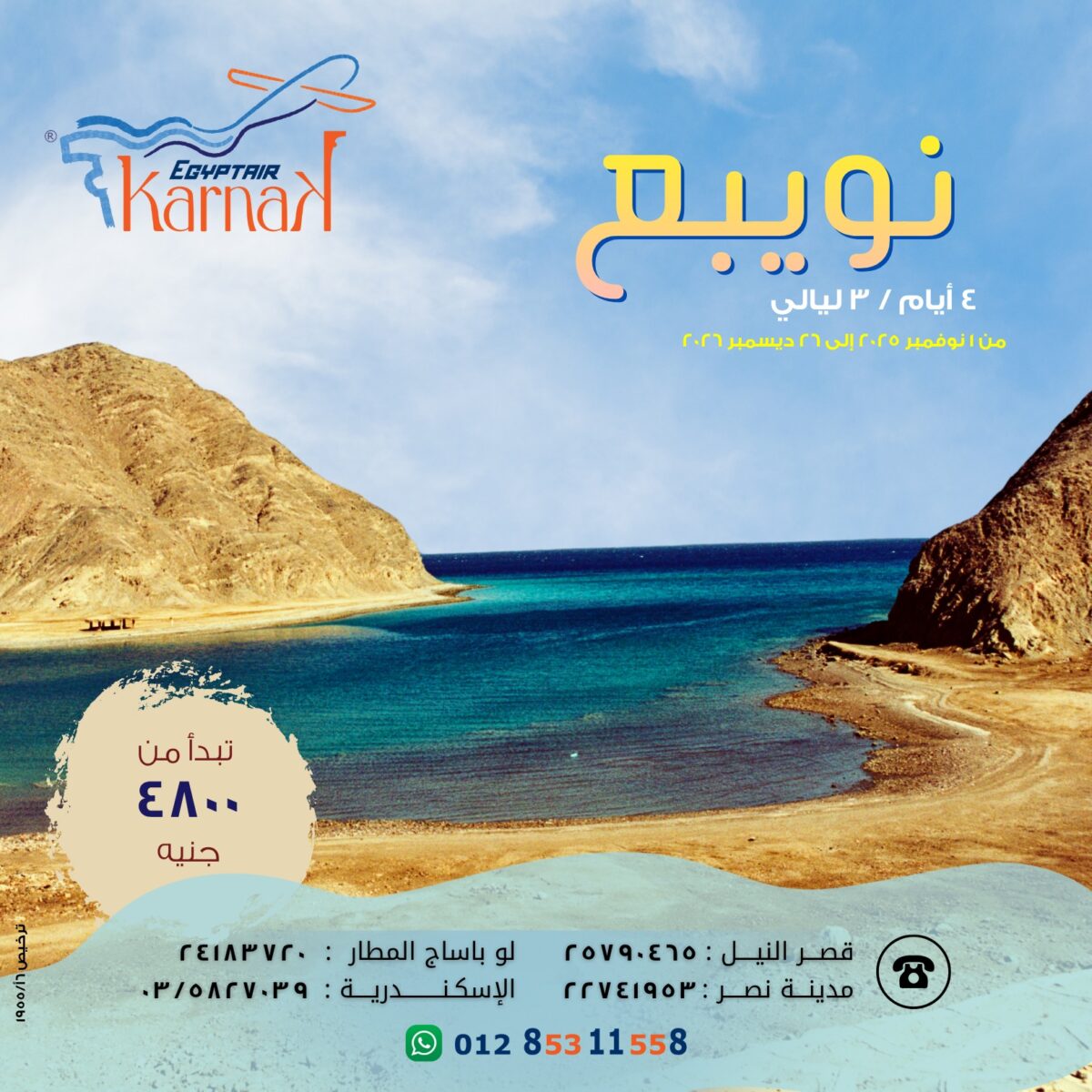 إيجيبت إير تورز – كرنَك كمان من الشركات اللي بتسهل التعامل جدًا. العرسان يقدروا يشوفوا كل العروض ويحجزوا الرحلة بالكامل أونلاين من الموبايل، والشركة بتبعت كل التفاصيل والتأكيدات على الإيميل أو الواتساب. وكمان عندهم خدمة عملاء جاهزة طول الوقت لأي تعديل أو استفسار. التعامل معاهم بسيط ومهني وبيخلي العميل مطمن إن كل حاجة ماشية بدقة وتنظيم.