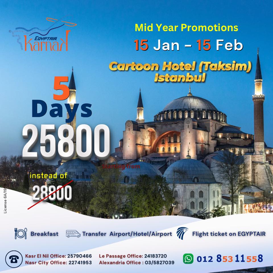 شركة إيجيبت إير تورز – كرنَك تعتبر واحدة من أعرق وأقوى الشركات السياحية في مصر، واسمها مرتبط بخبرة طويلة في تنظيم الرحلات داخل مصر وخارجها. الشركة ليها تاريخ كبير في تقديم خدمات سياحية مميزة، وخصوصًا في تنظيم رحلات شهر العسل اللي بتركز فيها على راحة العرسان وتوفير تجربة فخمة ومنظمة على أعلى مستوى. إيجيبت إير تورز – كرنَك بتجمع بين الثقة اللي الناس عارفاها عن مصر للطيران وبين الخدمة السياحية المتكاملة اللي بتخلي الرحلة كلها سهلة ومريحة من البداية للنهاية.