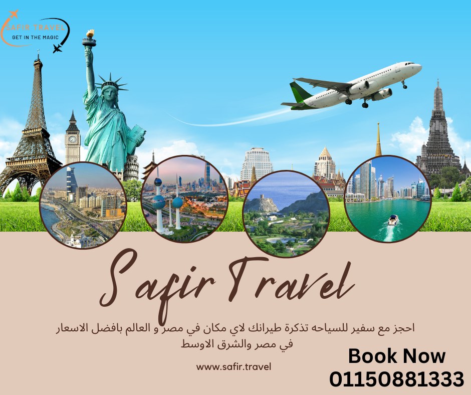 سواء كنت ترغب في استكشاف معالم مصر التاريخية أو السفر إلى وجهات سياحية عالمية، Safir Travel هي الخيار المثالي لك. مع باقات سياحية متميزة، فريق محترف، وخدمة عملاء ممتازة، تضمن لك الشركة رحلة سياحية لا تُنسى. تواصل مع Safir Travel اليوم واختر رحلتك القادمة!
