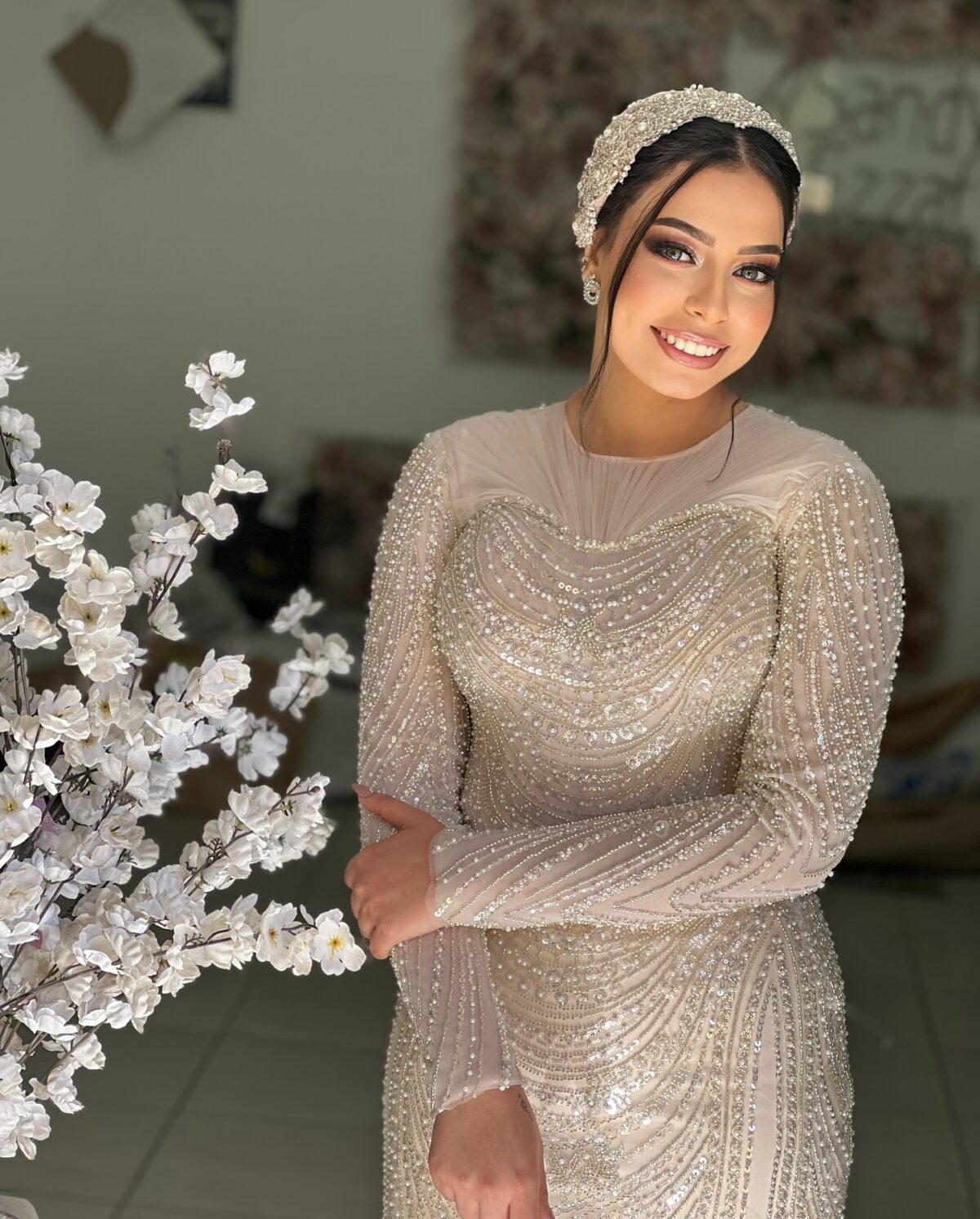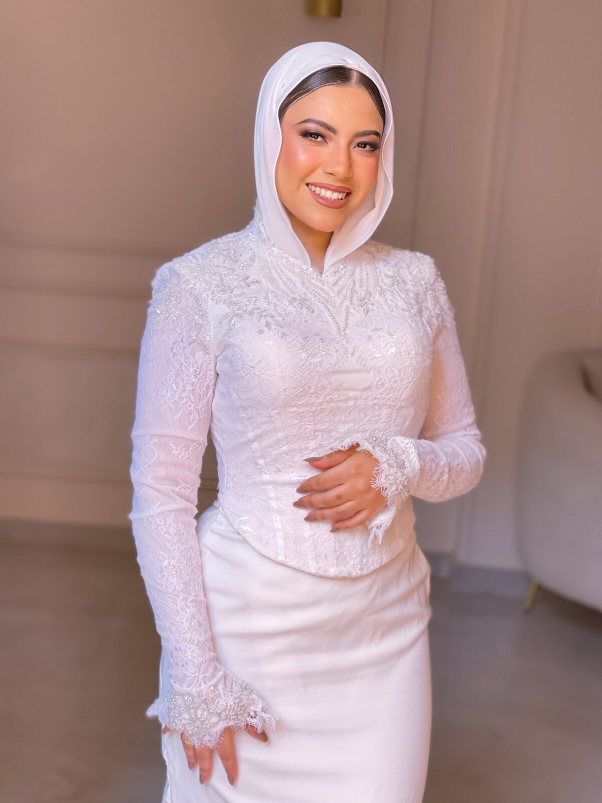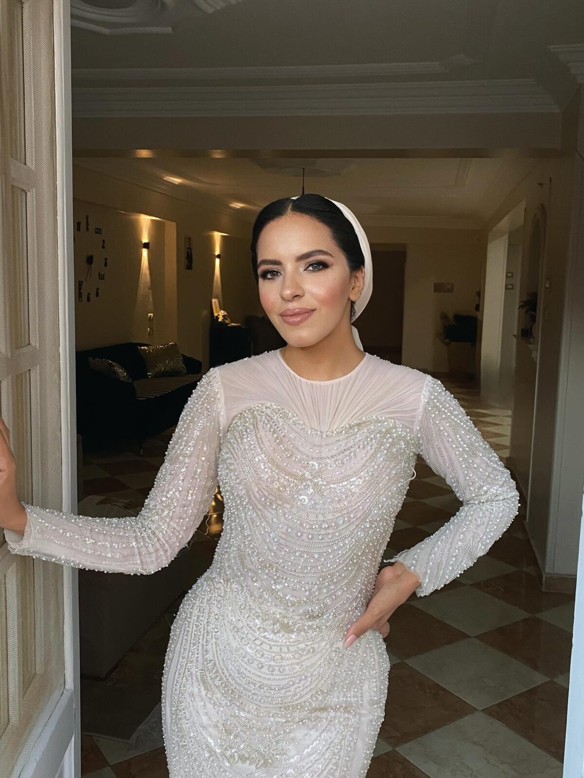 التجربة في d_n_atelier بتكون هادية ومريحة. العروسة بتجرب أكتر من موديل وتشوف شكلها عليها وهي واقفة وبتتحرك، وده بيفرق جدًا. ساعات العروسة تدخل وهي مقتنعة إن موديل معين هو الأفضل، وتتفاجئ إن موديل تاني طالع عليها أحلى، وساعات الموديل اللي كانت مستبعداه يطلع الأنسب لجسمها. علشان كده المكان بيدي وقت ومساحة للتجربة من غير استعجال.