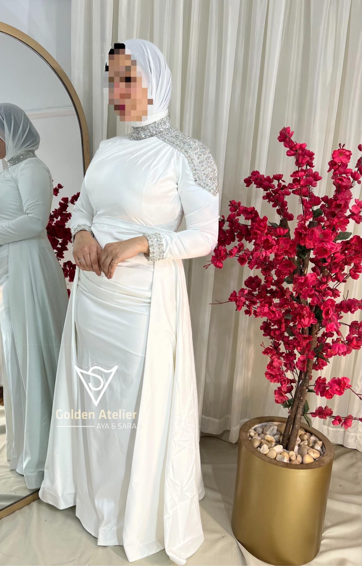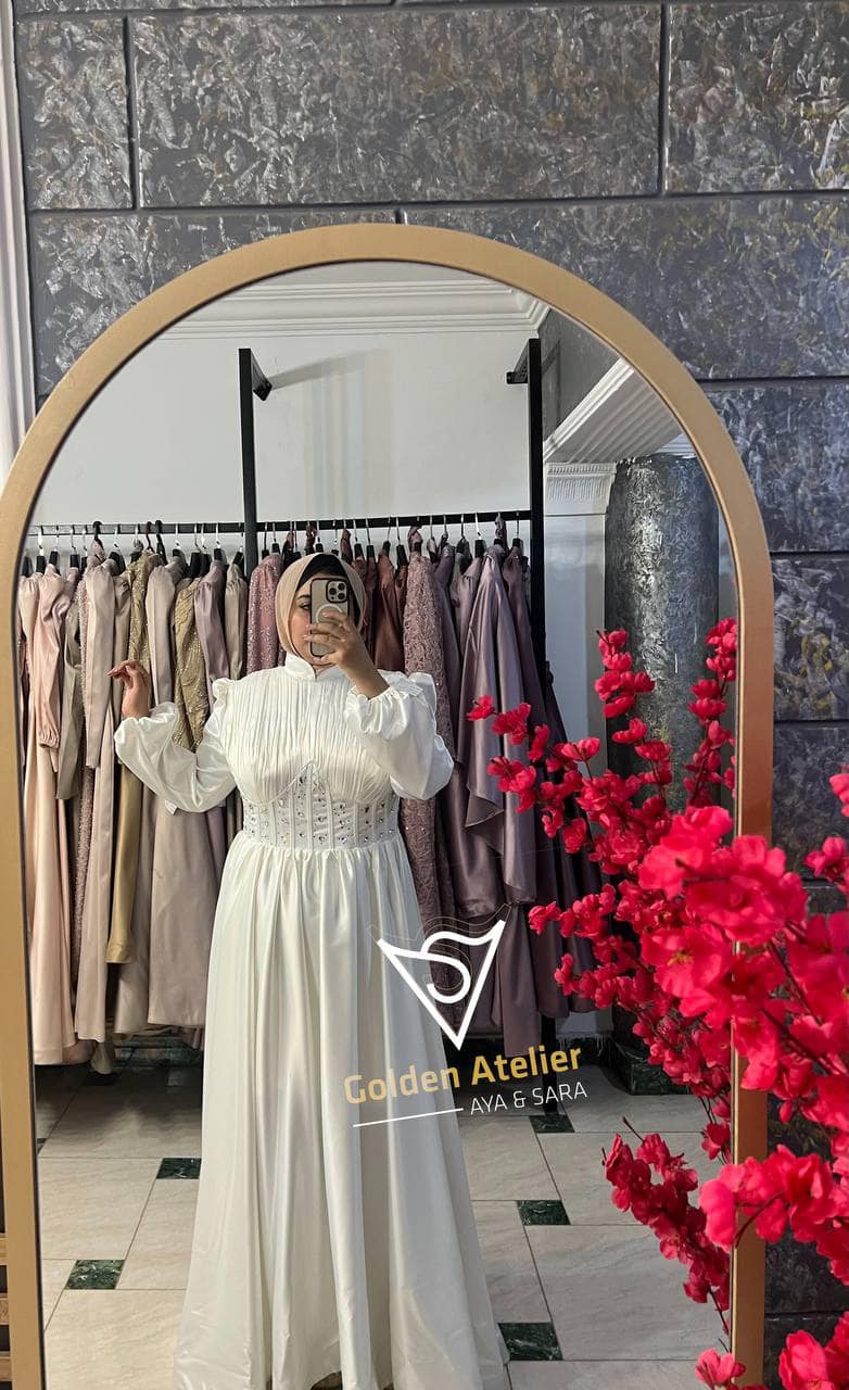 ولو العروسة عندها موديل معين في دماغها ومش لاقياه جاهز، Golden Atelier بيقدّم خدمة التفصيل. الفستان بيتعمل من أول القماشة لحد آخر غرزة، حسب المقاسات والشكل اللي العروسة عايزاه بالضبط. الخدمة دي بتبقى مثالية للبنات اللي عايزين موديل مميز ومختلف مش موجود في المعروض.