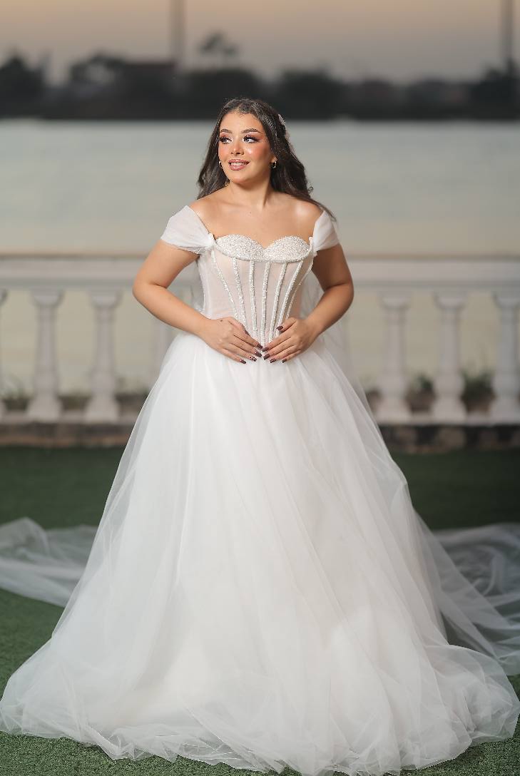 الموديلات اللي بتتعرض هناك دايمًا فيها ذوق واضح وخامات نظيفة. في فساتين دانتيل كاملة للبنات اللي بتحب اللوك الكلاسيكي، وفي موديلات تل خفيف فيها حركة هادية تدي إحساس بالراحة، وفي موديلات مطرزة بتطريز ناعم يدي لمسة فخمة من غير ما يخلي الفستان تقيل. في كمان قصّات ضيقة تبرز الجسم، وقصّات منفوشة بتدي شكل ملكي يناسب البنات اللي بتحب الظهور.