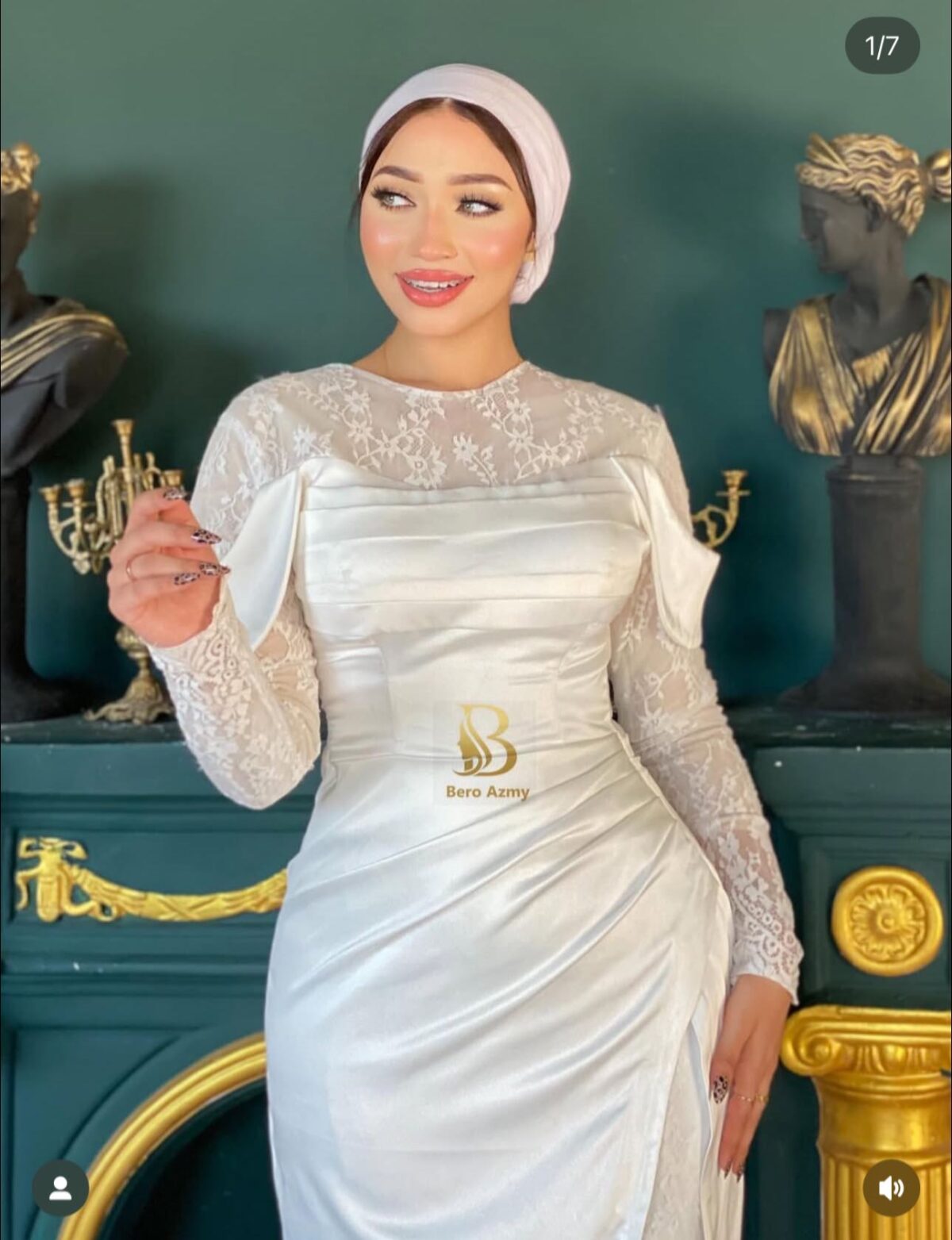 Beroo Azmy Atelier مش بس للعروسة اللي بتجهّز للفرح. المكان كمان بيعرض موديلات خطوبة، كتب كتاب، وسواريه للبنات اللي عندهم مناسبات تانية وعايزين لبس شيك من غير لفة كتير.