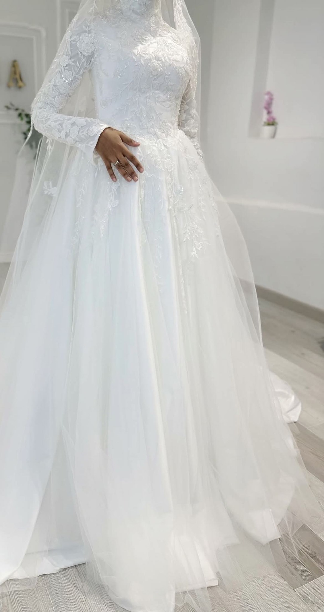 التجربة نفسها داخل المكان بتكون هادية ومن غير استعجال. العروسة بتجرب الموديلات وتشوف شكلها وهي واقفة وبتتحرك، وده مهم جدًا لأنها أحيانًا تلاقي إن الموديل اللي كانت مستبعداه طالع عليها أحلى، أو العكس. المكان بيدي البنت مساحة إنها ترتاح وتشوف نفسها في أكتر من موديل قبل ما تقرر.