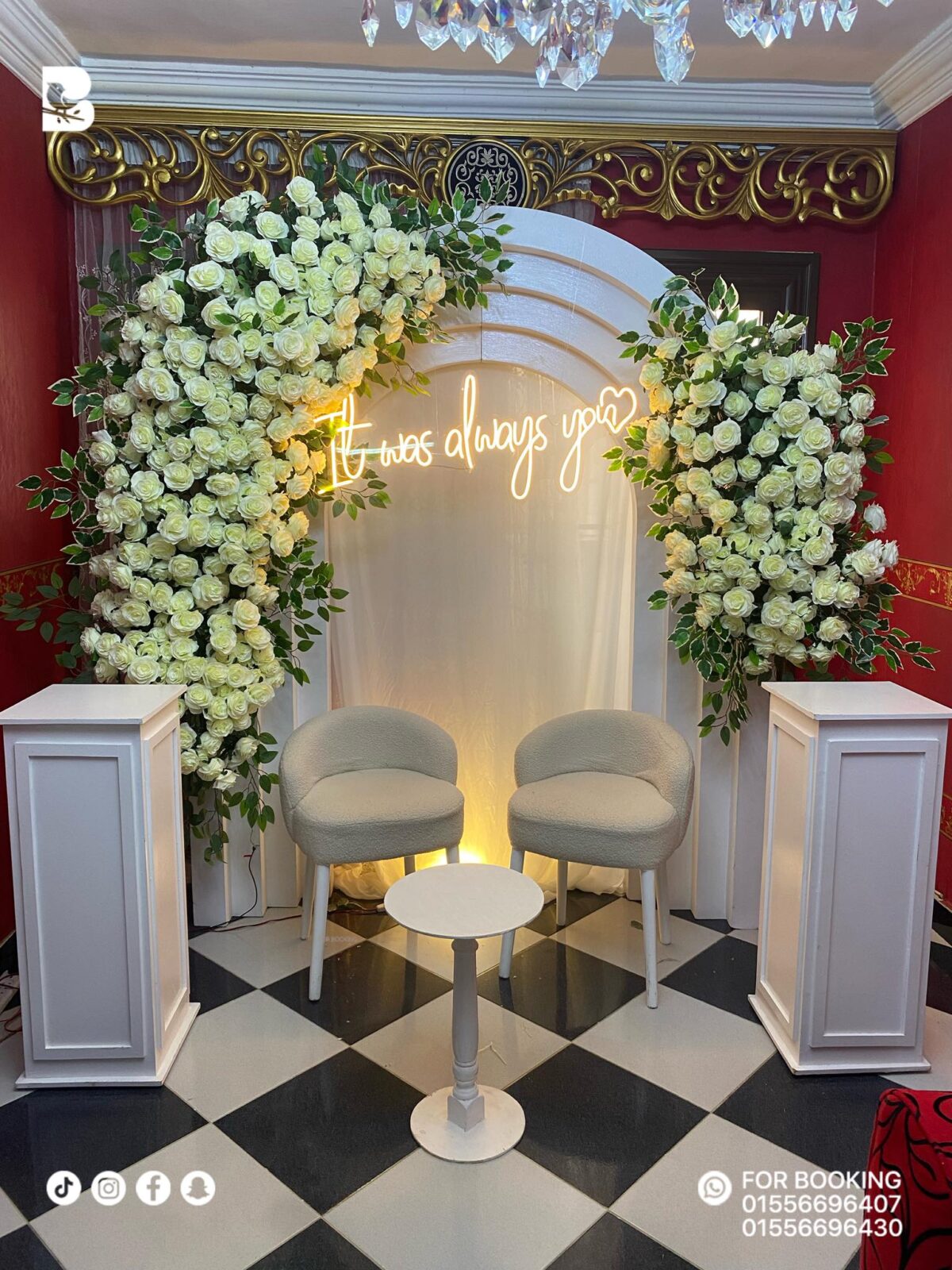 من ناحية الميزانية، الفريق عنده مرونة عالية جدًا. بيقدروا يقترحوا حلول تناسب كل المستويات، سواء فرح كبير أو بسيط، وكل مرة بيطلع الشغل بنفس الجودة. ممكن يستخدموا ورود موسمية أو ديكورات مصنوعة يدويًا بشكل أنيق بدل التفاصيل المكلفة، والنتيجة دايمًا شكل فخم ومنظم من غير تكلفة مبالغ فيها.