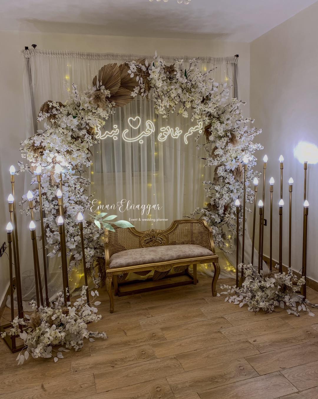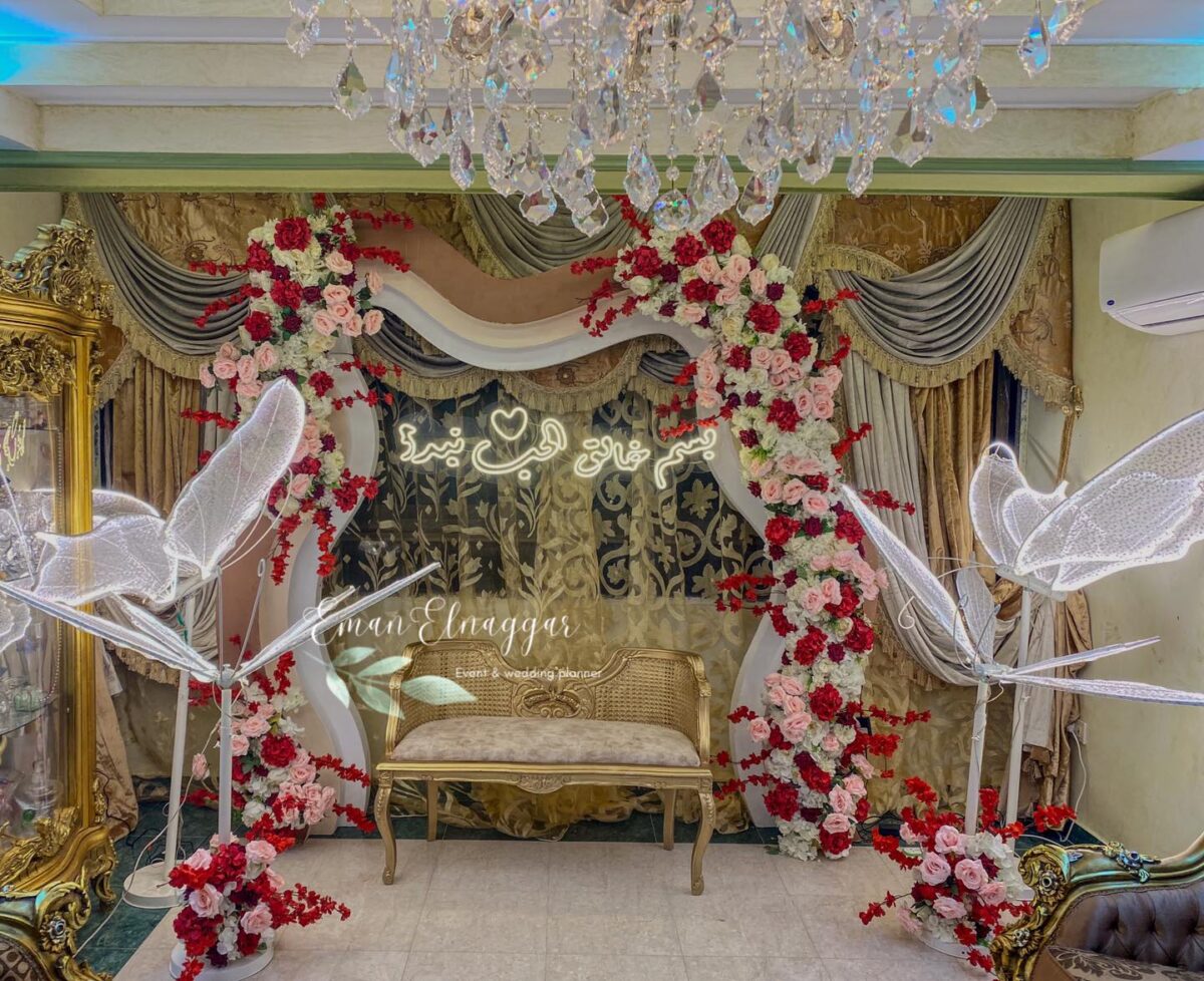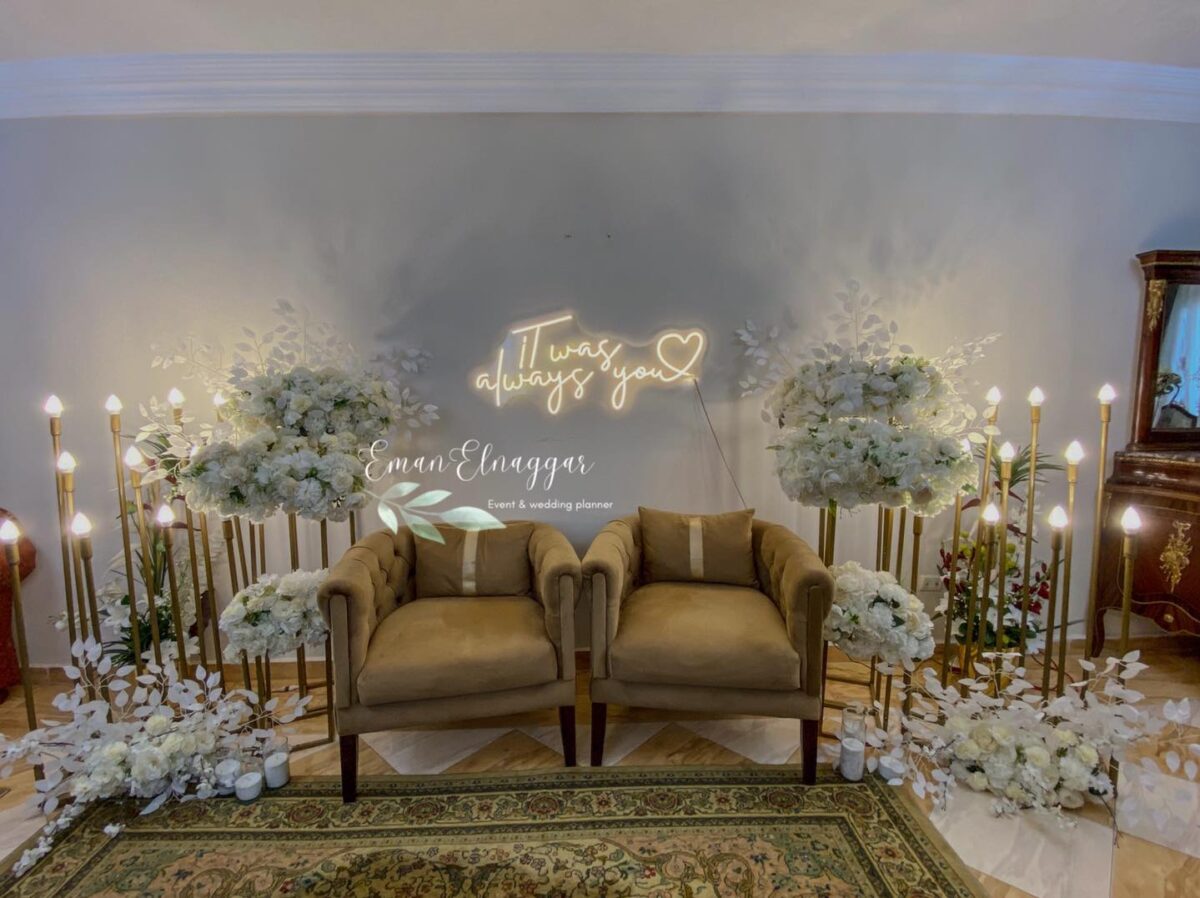 من ناحية الميزانية، Eman Elnaggar مرنة جدًا وبتعرف تشتغل على كل المستويات. بتقترح أفكار ذكية تخلي الشكل النهائي فخم وأنيق من غير ما تكون التكلفة عالية. ممكن تعتمد على ورود موسمية بدل الأنواع الغالية، أو تستخدم الإضاءة بطريقة تغني عن ديكورات مكلفة. النتيجة دايمًا شكل متكامل يليق بالمناسبة من غير ما يرهق العروسة في المصاريف.