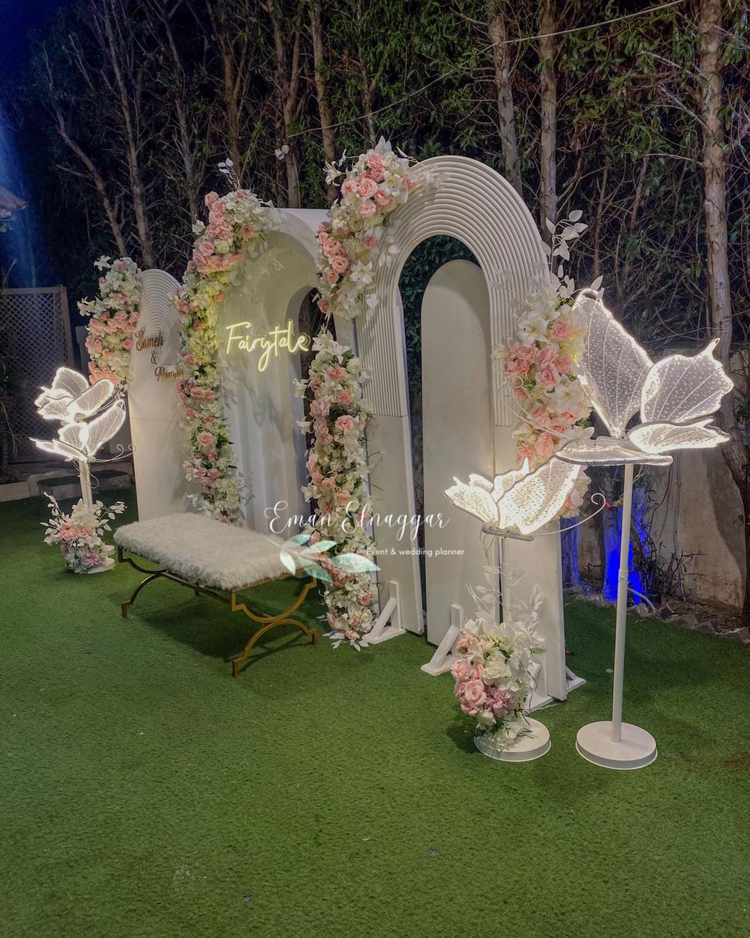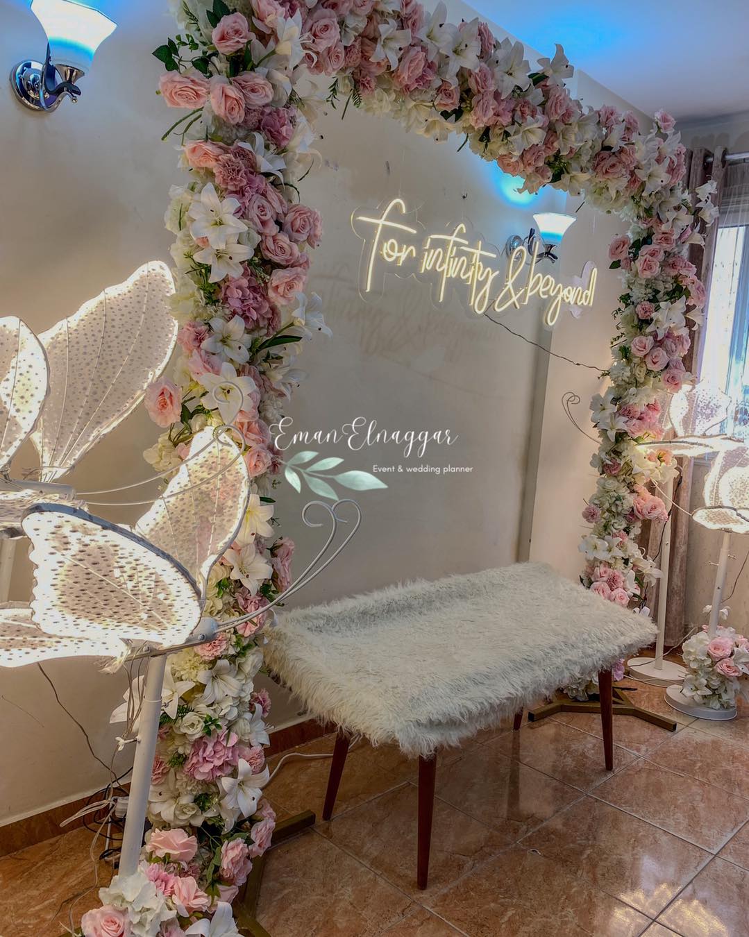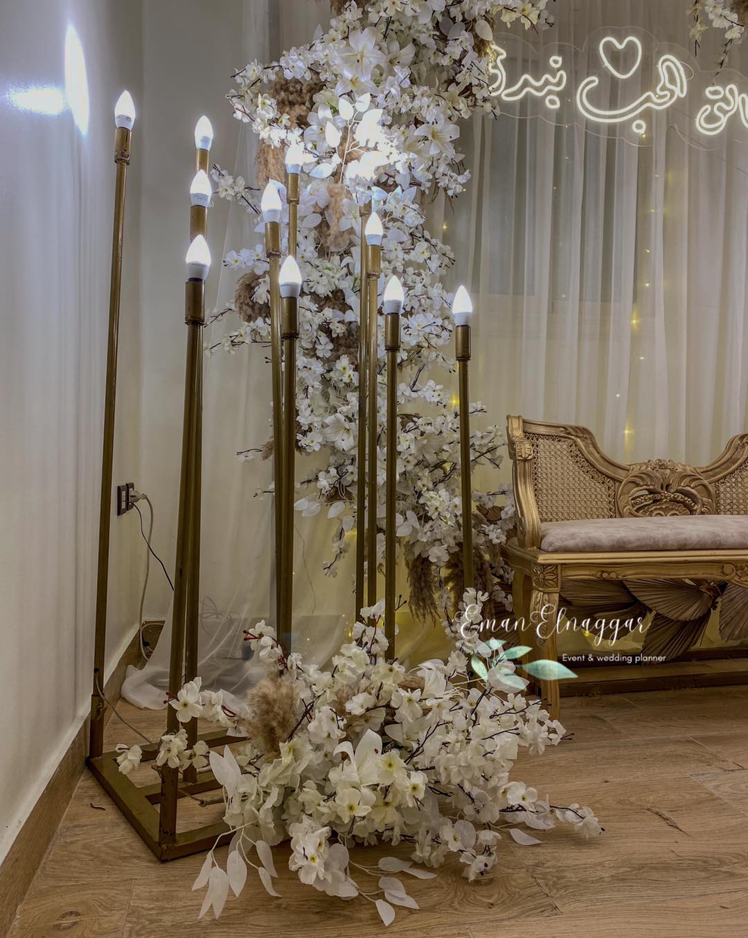 من ناحية الميزانية، Eman Elnaggar مرنة جدًا وبتعرف تشتغل على كل المستويات. بتقترح أفكار ذكية تخلي الشكل النهائي فخم وأنيق من غير ما تكون التكلفة عالية. ممكن تعتمد على ورود موسمية بدل الأنواع الغالية، أو تستخدم الإضاءة بطريقة تغني عن ديكورات مكلفة. النتيجة دايمًا شكل متكامل يليق بالمناسبة من غير ما يرهق العروسة في المصاريف.