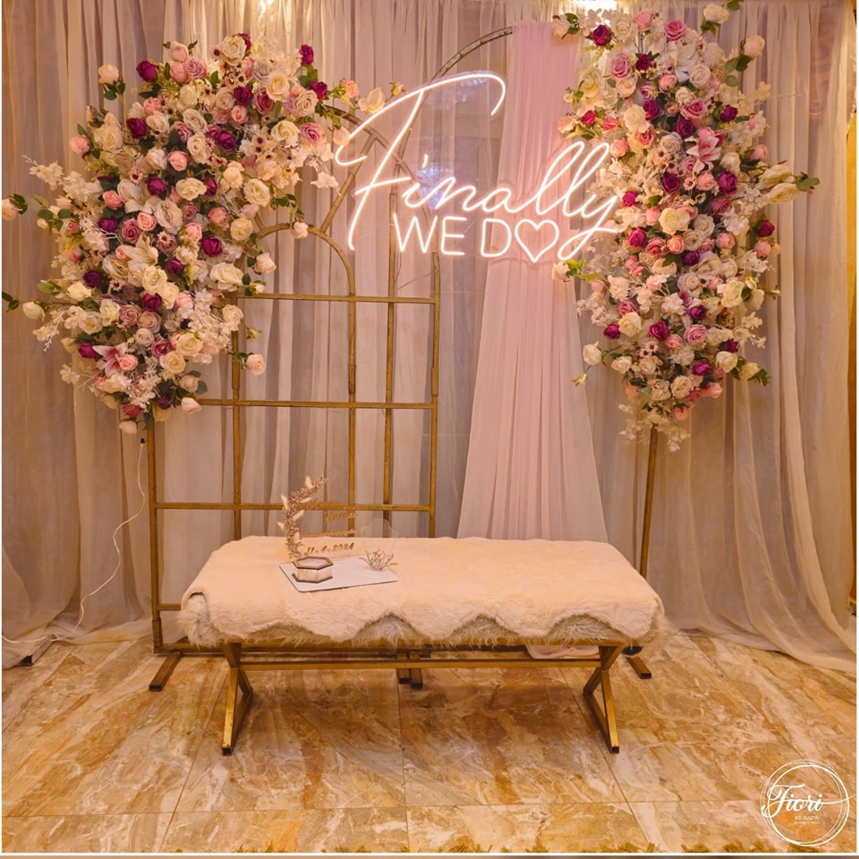 الديكور بالنسبالها هو لغة التعبير عن الفرح. بتحب تشتغل على التفاصيل اللي تدي إحساس طبيعي وأنيق في نفس الوقت. الكوشة عند Fiori by Nada دايمًا فيها ورد كتير وإضاءة ناعمة تدي للمكان جو دافي ومريح. الطاولات بتتنسق بذوق راقي، فيها توازن بين الألوان والزهور، وركن التصوير بيتصمم بعناية علشان الصور تطلع فيها طاقة مبهجة ومليانة حياة.
