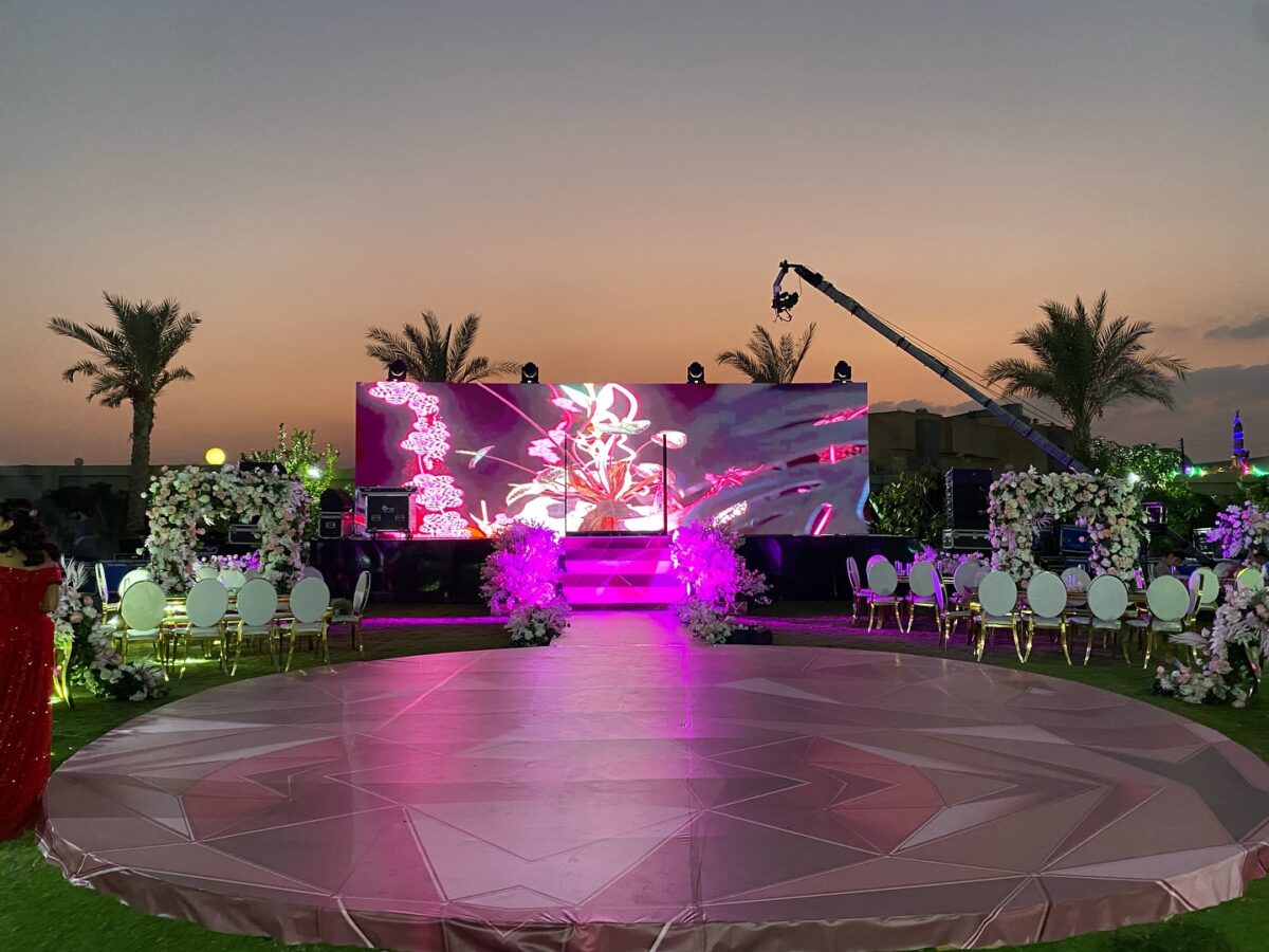 الإضاءة بالنسبالها جزء أساسي من أي فرح. بتعتبرها العنصر اللي بيكمل الصورة ويغير الإحساس في كل لحظة. في الزفة بتكون الإضاءة قوية ومليانة طاقة، وفي الرقصة الأولى بتتحول لإضاءة دافية وناعمة علشان اللحظة تبقى حالمة. بتتعامل مع النور كأنه لغة، كل لون وضوء ليه معنى بيكمل المود بتاع اليوم.