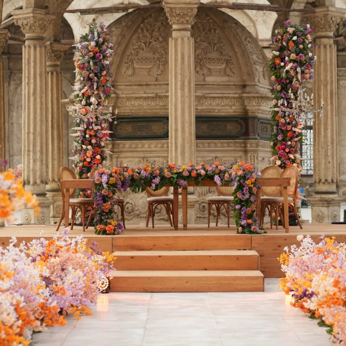 من أكتر الحاجات اللي بتميز شغلهم هو الدمج بين الفخامة والرُقي، من غير ما يبقى في مبالغة أو بهرجة. الكوشة عندهم دايمًا بتكون قطعة فنية، بتستخدم خامات غنية زي القطيفة، المرايات، والإضاءات الدافئة، بس كلها متوظفة بذوق، علشان تبقى متناسقة مع باقي القاعة.