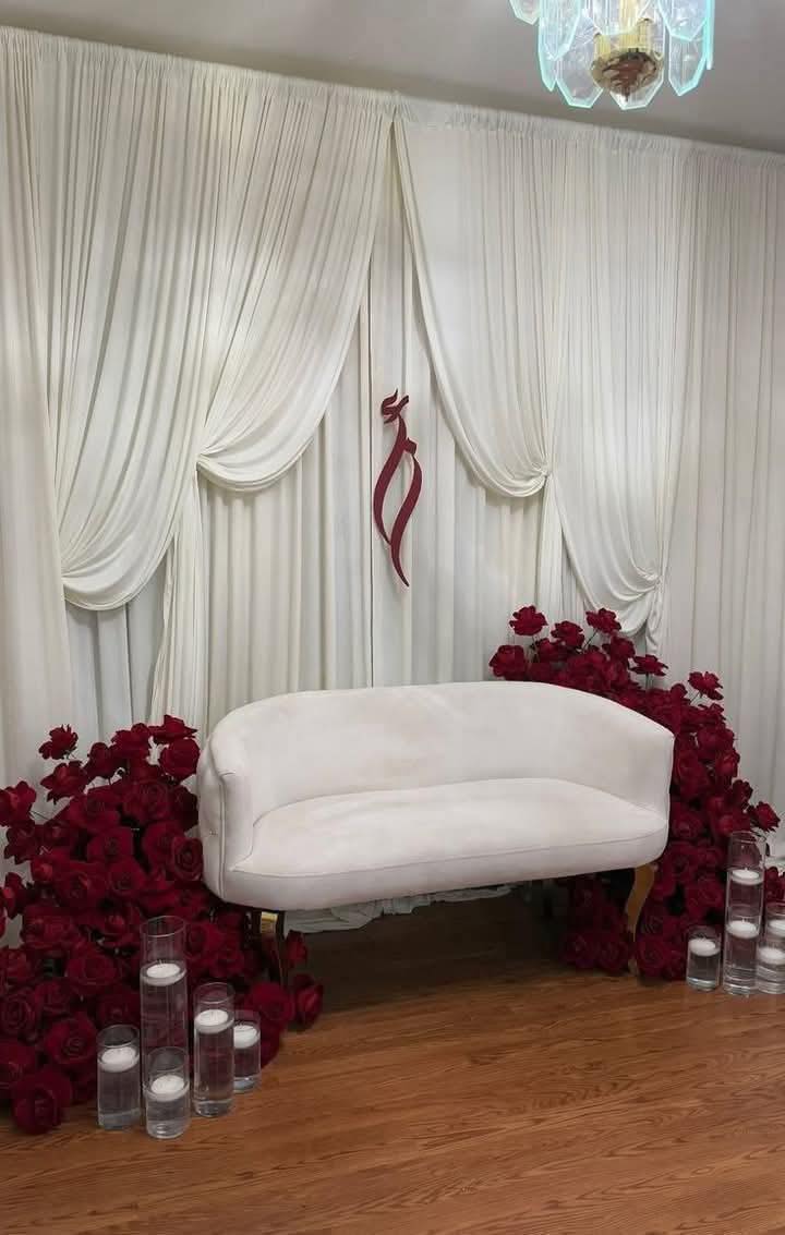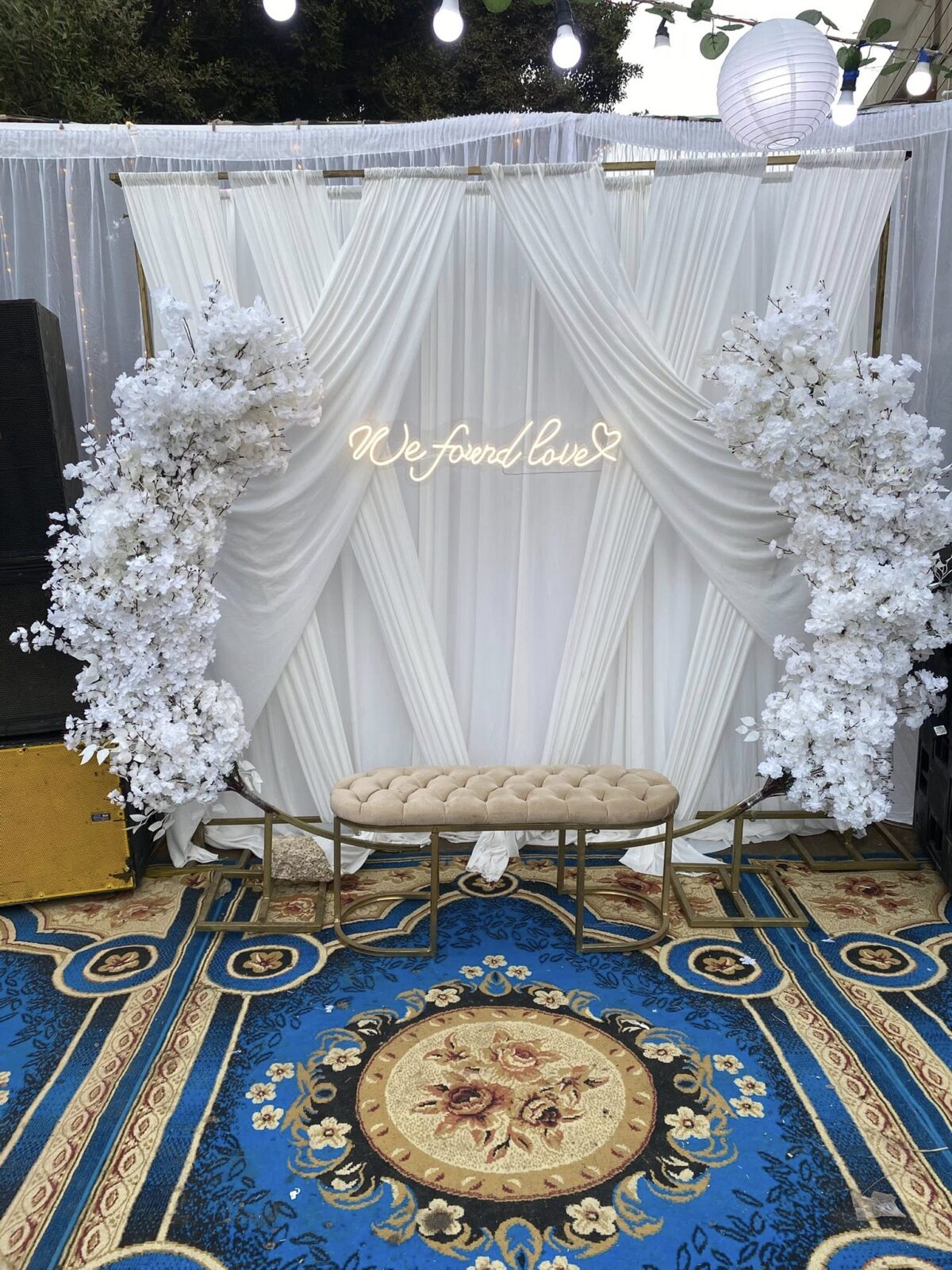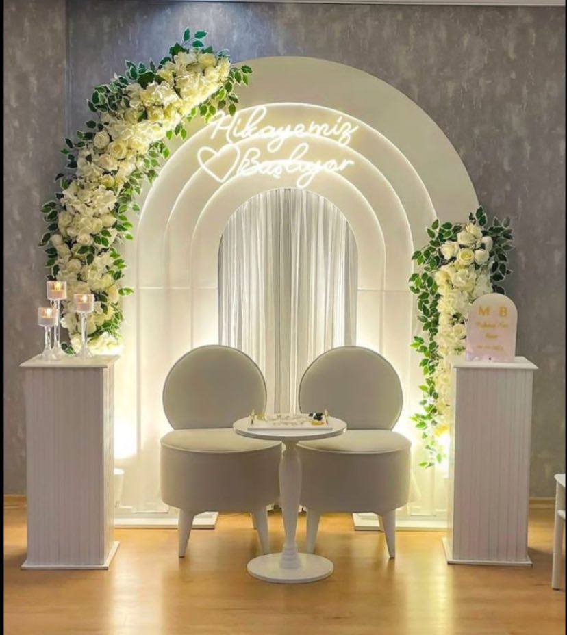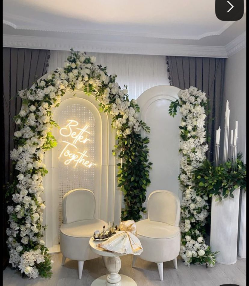 الديكور عند Love In Bloom دايمًا بيكون مليان طاقة إيجابية وألوان متناغمة. بيحبوا يشتغلوا على التفاصيل اللي بتدي للمكان روح، زي ترتيب الورود، شكل الكوشة، وتوزيع الإضاءة في القاعة. الكوشة عندهم دايمًا بتكون متصممة بذوق ناعم جدًا، والطاولات بيتنسق شكلها بحيث تكون أنيقة من غير أي مبالغة. أما ركن التصوير فبيتعامل كأنه مشهد من فيلم، كله تناغم بين الألوان والإضاءة والورد.