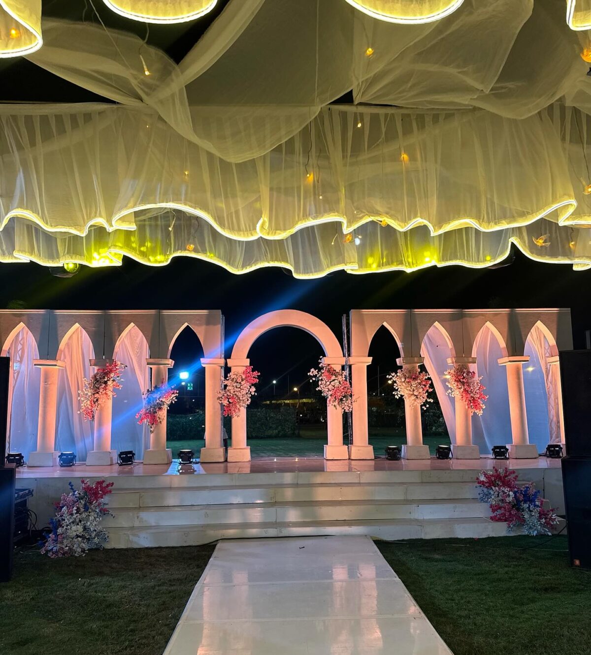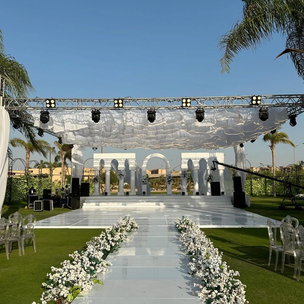 الفريق اللي بيشتغل مع Menna Attia معروف بالاحترافية العالية. بيتعاونوا مع المصورين، الدي جي، الكاترينج، وشركات الإضاءة بخطة واضحة ومتابعة مستمرة. قبل يوم الفرح بيجهزوا Check-list فيها كل التفاصيل الدقيقة: ترتيب الطاولات، توقيت الفقرات، حركة الخدمة، والإضاءة. التنظيم ده بيخلي اليوم كله ماشي بانسيابية، والعروسين يعيشوا اللحظة من غير أي توتر.
