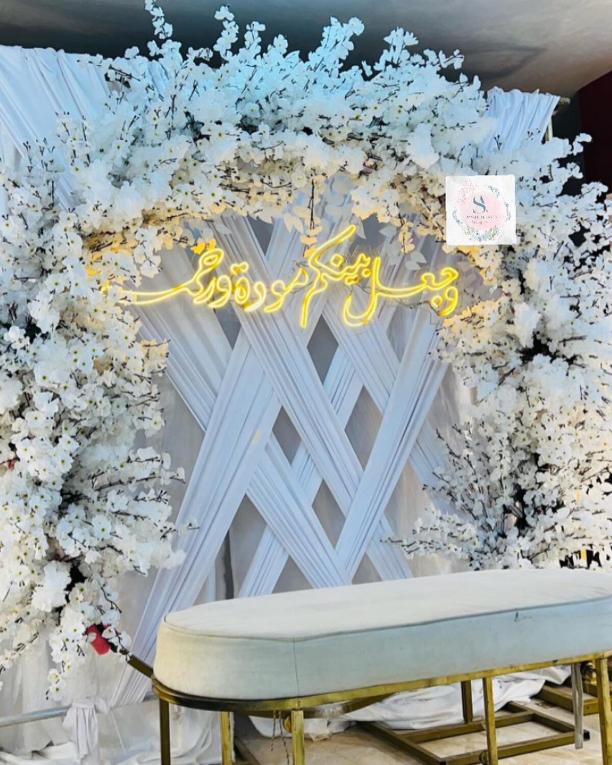 من ناحية الميزانية، Mona Tantawi عندها مرونة كبيرة. بتعرف تقترح بدائل عملية زي استخدام ورود موسمية قريبة من الشكل المطلوب أو الاعتماد على توزيع إضاءة قوي يغني عن تفاصيل مكلفة. الهدف إنها توازن بين الأناقة والتكلفة وتطلع النتيجة النهائية أنيقة ومناسبة لإمكانيات العروسين.