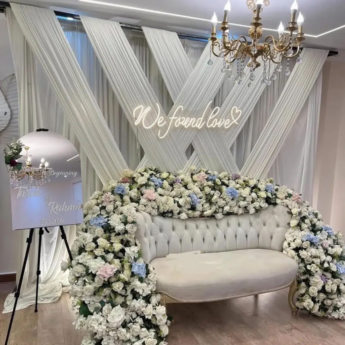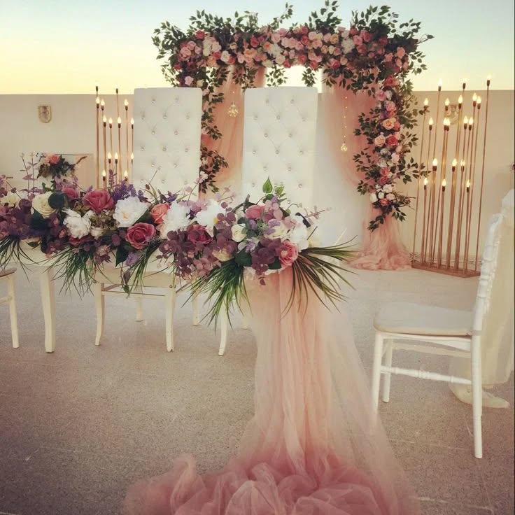 في اختيار الثيم، Nora بتحب تبني Moodboard بسيط يجمع ألوان، خامات، أفكار ورود، وإضاءة. الثيم مش لازم يكون معقد، المهم يبقى مناسب للمكان وللإضاءة وللصور. لو القاعة فخمة بتروح لاختيارات هادية بألوان دافئة، ولو المكان أوت دور بتركز على عناصر طبيعية ولمسات خفيفة تعيش مع الهواء والإضاءة الطبيعية.