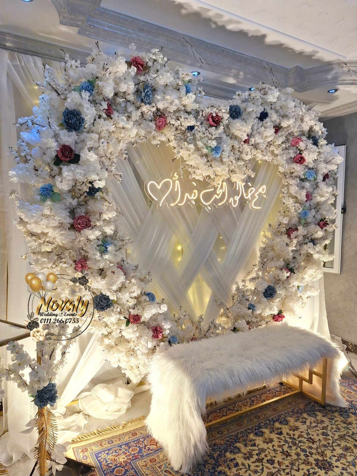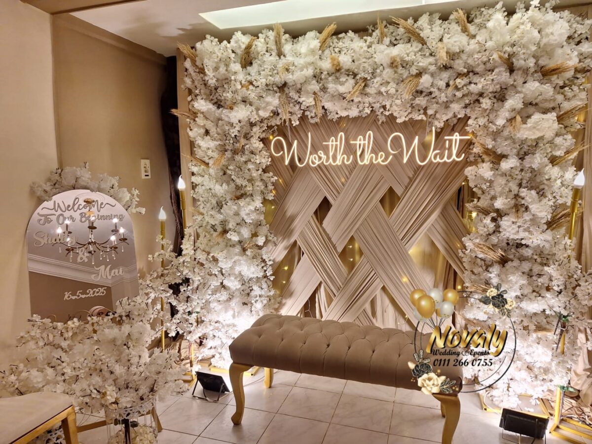 الديكور عند Novaly هو العلامة المميزة ليهم. بيحبوا يعتمدوا على التفاصيل الهادية والبسيطة اللي تدي للمكان شكل راقي من غير أي مبالغة. الكوشة دايمًا بتكون أنيقة جدًا، فيها توازن بين الإضاءة والورد، والطاولات بتتنسق بذوق راقي يخلي المكان كله مبهج ومريح في نفس الوقت. أما ركن التصوير، فبيتصمم بفكر فني عصري يخلي كل صورة شكلها طبيعي ومليانة حياة.