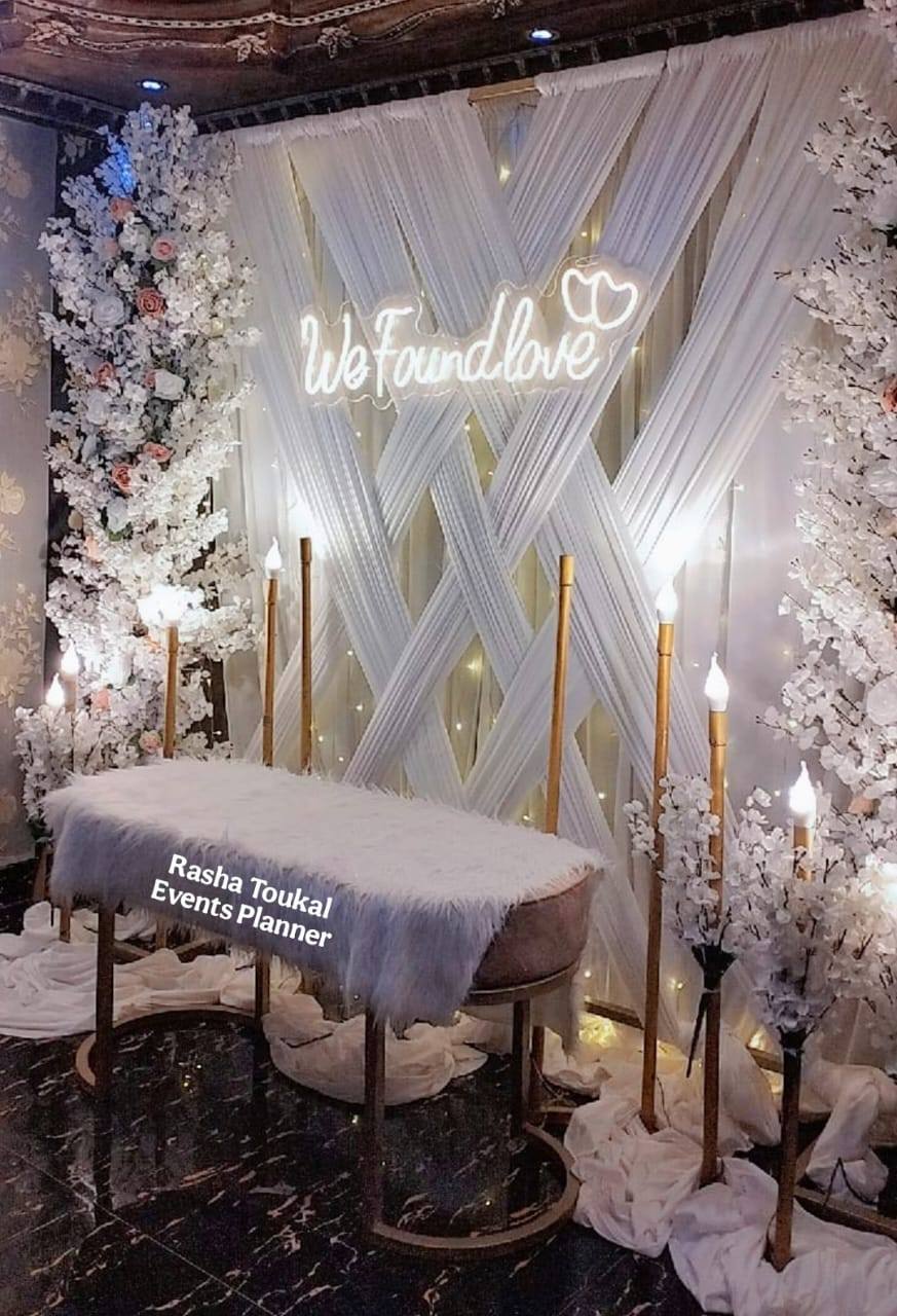 من الحاجات اللي بتخلي شغل Rasha يفضل في الذاكرة، هي إن عندها أسلوب خاص في تنسيق القاعات، وبتعرف تدي طابع لكل فرح. يعني مفيش شكل بيتكرر، وكل عروسة بتحصل على تصميم يناسبها هي بس. ده غير إن اهتمامها بركن التصوير بيخلي الصور تطلع ولا أروع.