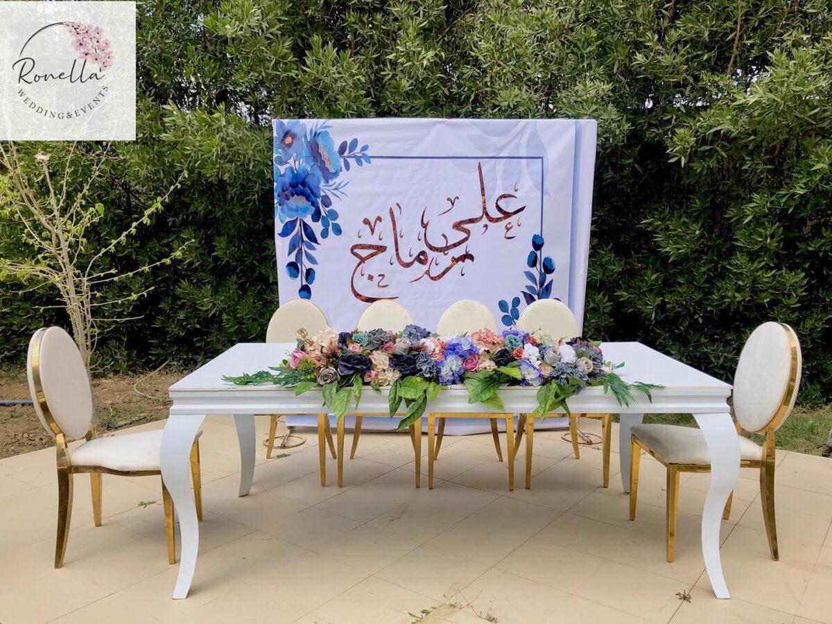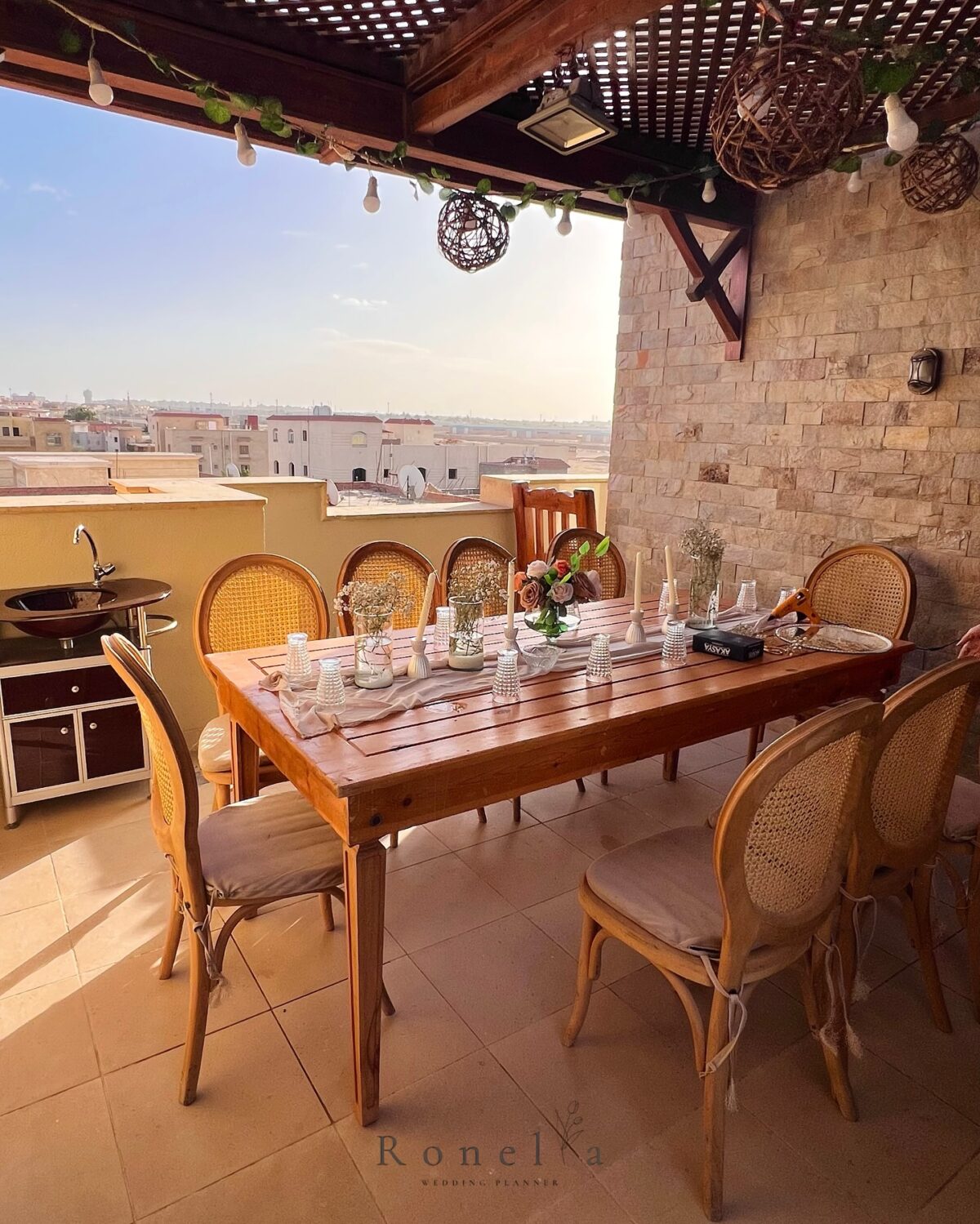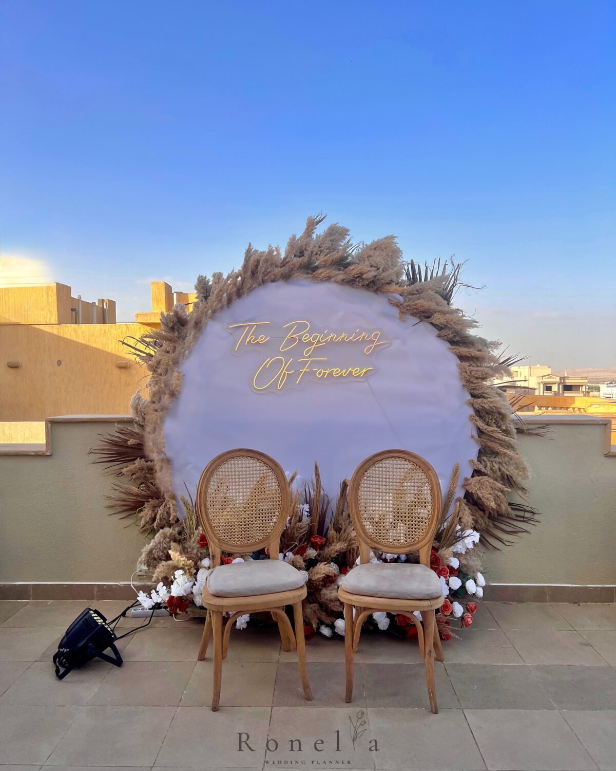 الديكور عند Ronella هو أول حاجة بتلفت النظر. دايمًا بيكون متوازن بين الأناقة والرقي، من غير ما يكون فيه مبالغة أو تكلف. الكوشة بتتصمم بعناية علشان تعبر عن شخصية العروسين، الطاولات بتتنسق بذوق بسيط لكن أنيق، والزهور بتتوزع بطريقة فنية تدي للمكان إحساس بالهدوء والرومانسية. حتى ركن التصوير بيكون معمول بفكر فني يخلي الصور شكلها طبيعي ومليان مشاعر حقيقية.