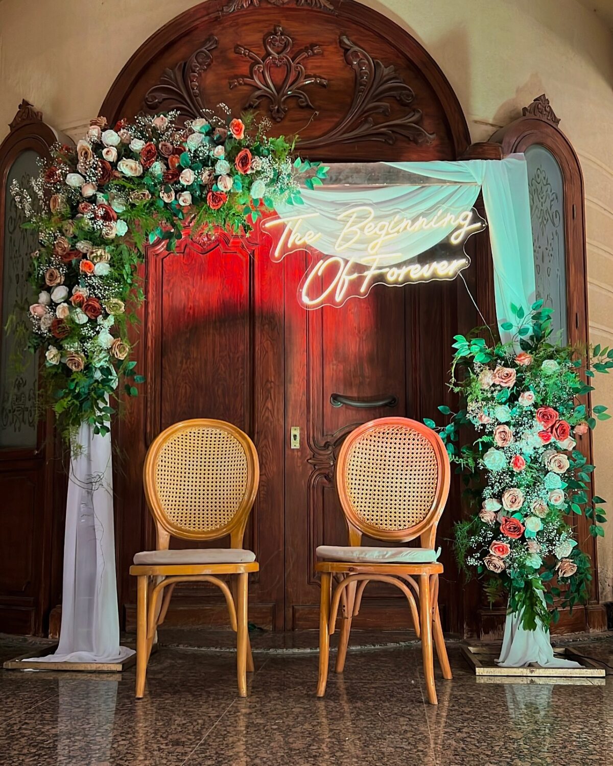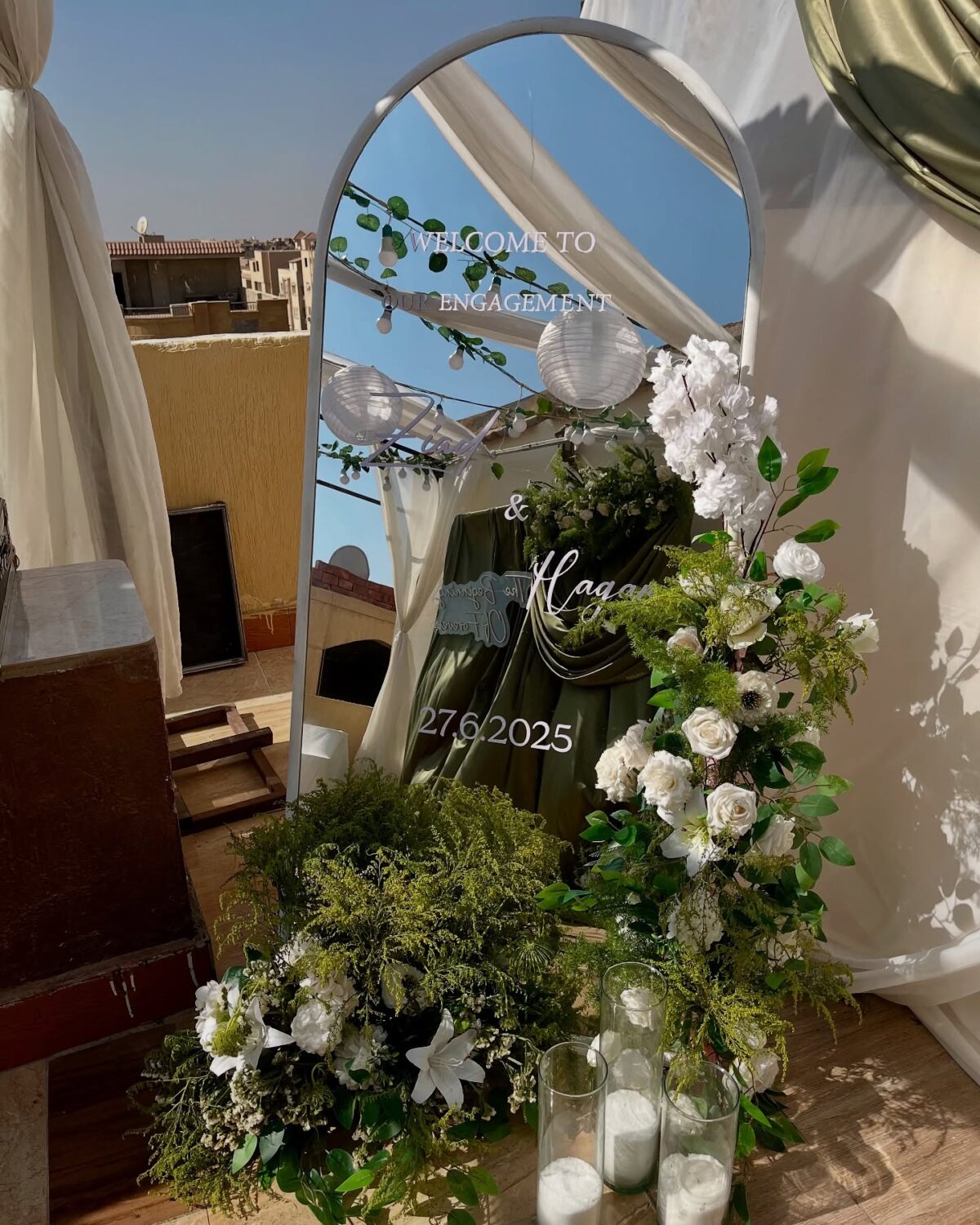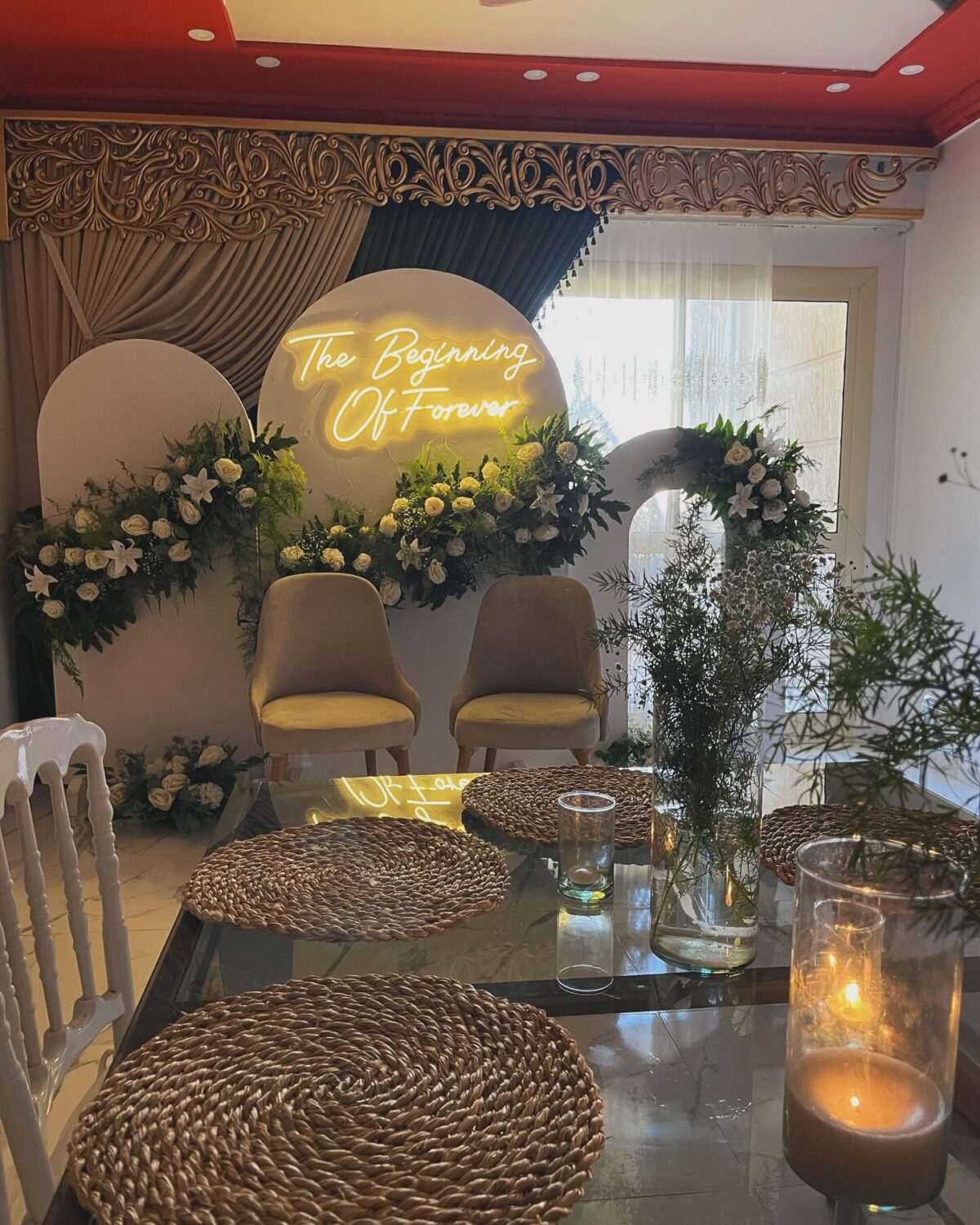 الديكور عند Ronella هو أول حاجة بتلفت النظر. دايمًا بيكون متوازن بين الأناقة والرقي، من غير ما يكون فيه مبالغة أو تكلف. الكوشة بتتصمم بعناية علشان تعبر عن شخصية العروسين، الطاولات بتتنسق بذوق بسيط لكن أنيق، والزهور بتتوزع بطريقة فنية تدي للمكان إحساس بالهدوء والرومانسية. حتى ركن التصوير بيكون معمول بفكر فني يخلي الصور شكلها طبيعي ومليان مشاعر حقيقية.