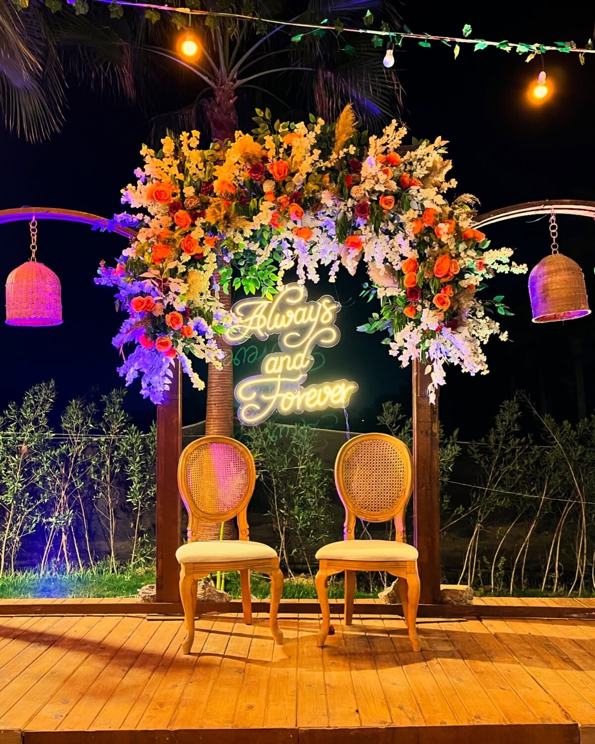 الإضاءة بالنسبالهم جزء من القصة، مش مجرد ديكور. بيحبوا يلعبوا بالإضاءة علشان يغيروا المود على حسب اللحظة. في الرقصة الأولى بيكون النور دافي وناعم علشان الجو يبقى هادي ورومانسي، وفي الزفة والفقرات بيكون فيه إضاءة مليانة طاقة تدي إحساس بالحركة والفرحة. كل زاوية في المكان بتتخطط بعناية علشان الصور والفيديوهات تطلع بشكل احترافي وجذاب.