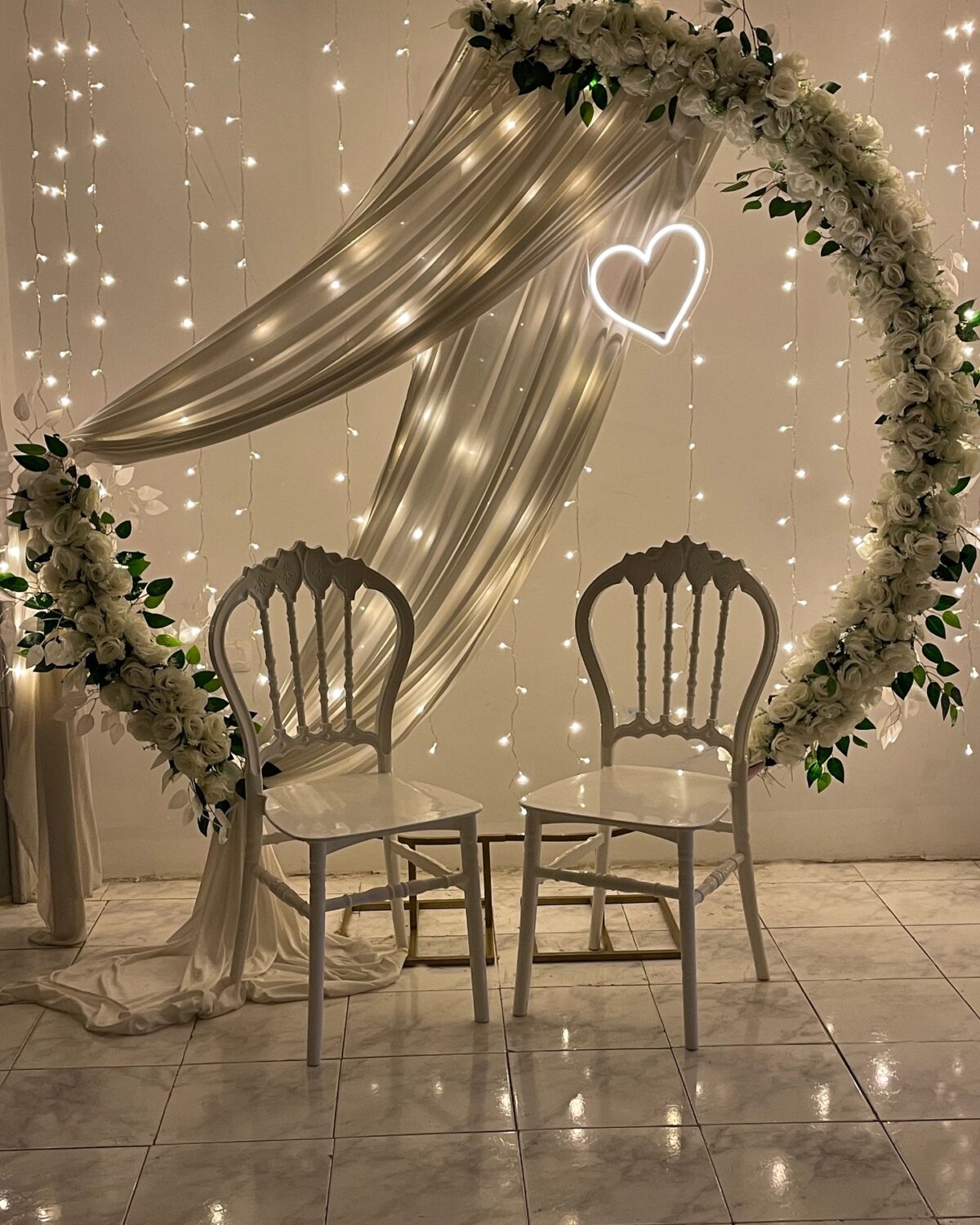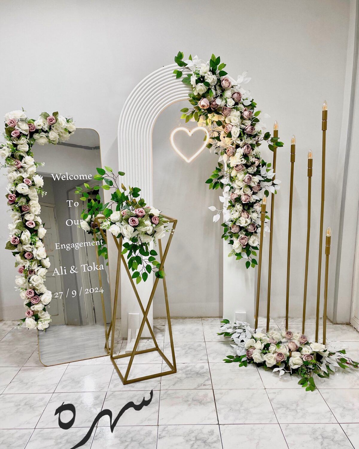 في موضوع الديكور، عندهم لمسة واضحة ومميزة. الكوشة بتتعمل بشكل يتماشى مع حجم القاعة علشان الصور تبان متوازنة، والطاولات بيتحط عليها ديكور أنيق وشيك من غير ما يبقى فيه زحمة. كمان ركن التصوير بيتعمل بنفس الثيم المختار، والإضاءة بتتوزع بعناية بحيث تضيف جو رومانسي وتبرز جمال القاعة.