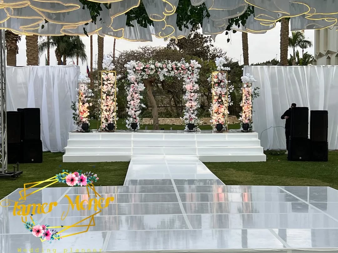 وفي يوم الفرح، تامر بيكون دايمًا موجود من بدري، يراجع، ويتابع، ويضبط آخر اللمسات بنفسه. مش بيكتفي إنه يخطط، لكن كمان بيتأكد إن كل حاجة بتتنفذ زي ما اتفق مع العروسة والعريس. وده بيخلي اليوم يعدي بهدوء وراحة من غير مفاجآت.