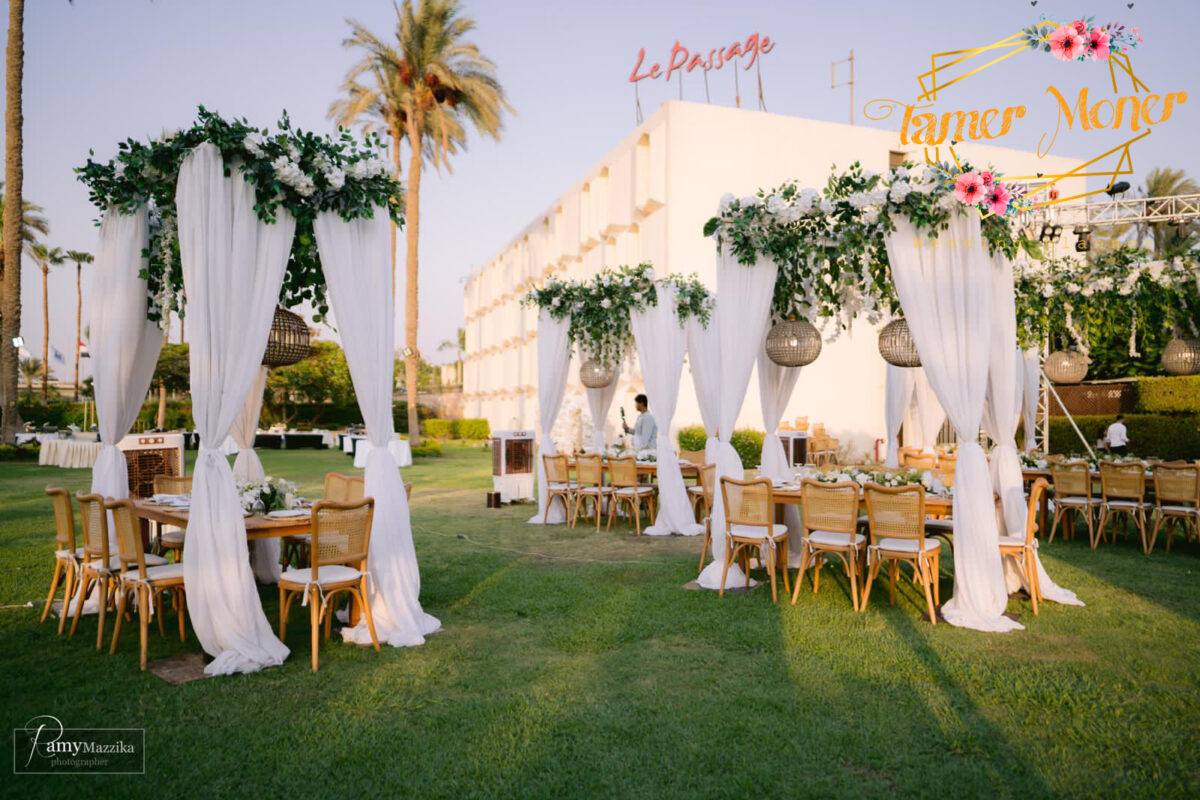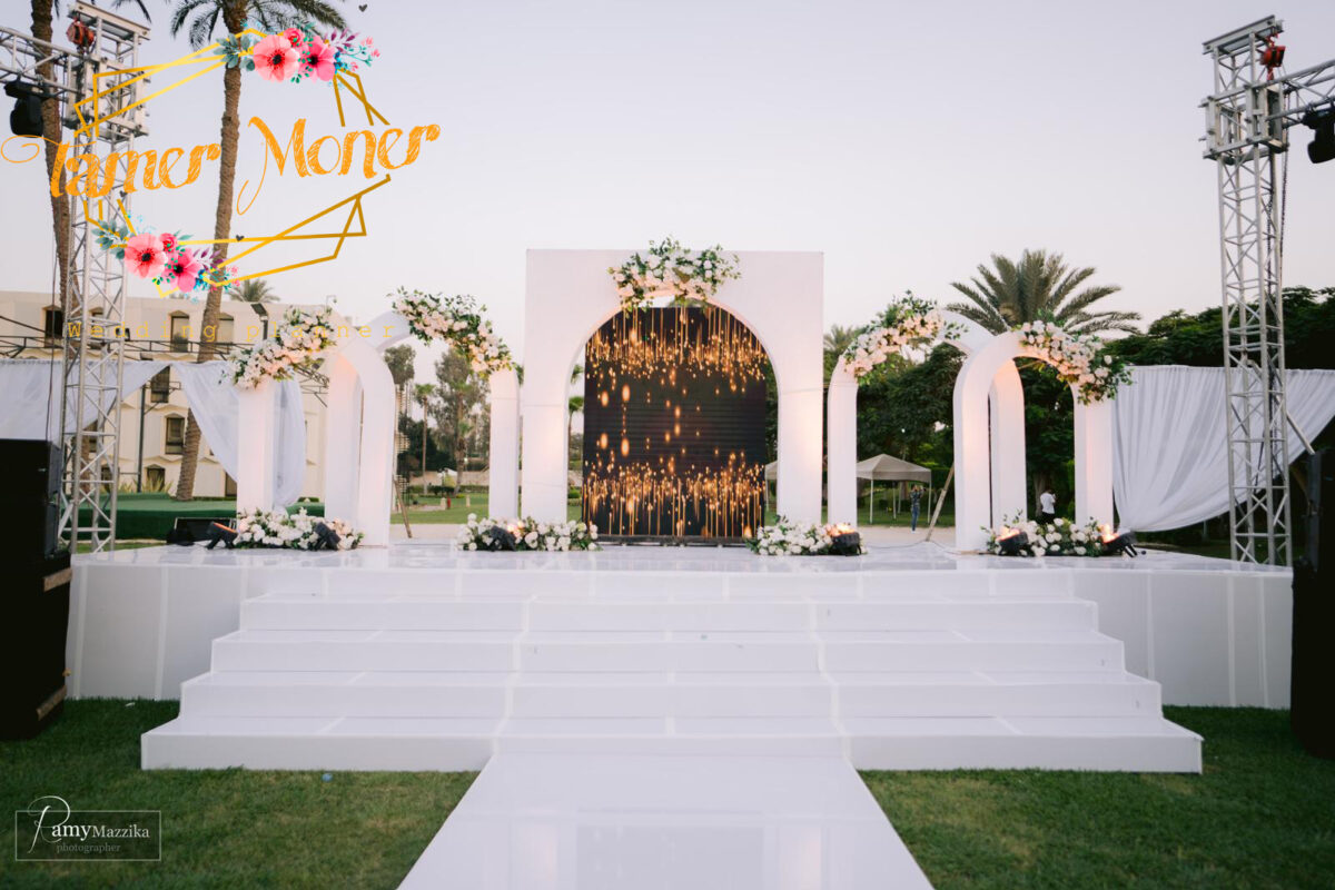 Tamer Moner كمان عنده ذوق راقي في اختيار الألوان وتنسيق المكان. بيعرف يوظف الإضاءة مع الديكور بشكل يخلّي المكان كله ليه روح. من أول الكوشة، لستايل الورود، لترتيب الطاولات، كل تفصيلة عنده ليها معنى ومكانها محسوب.