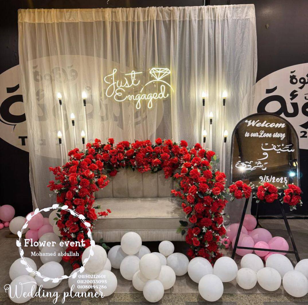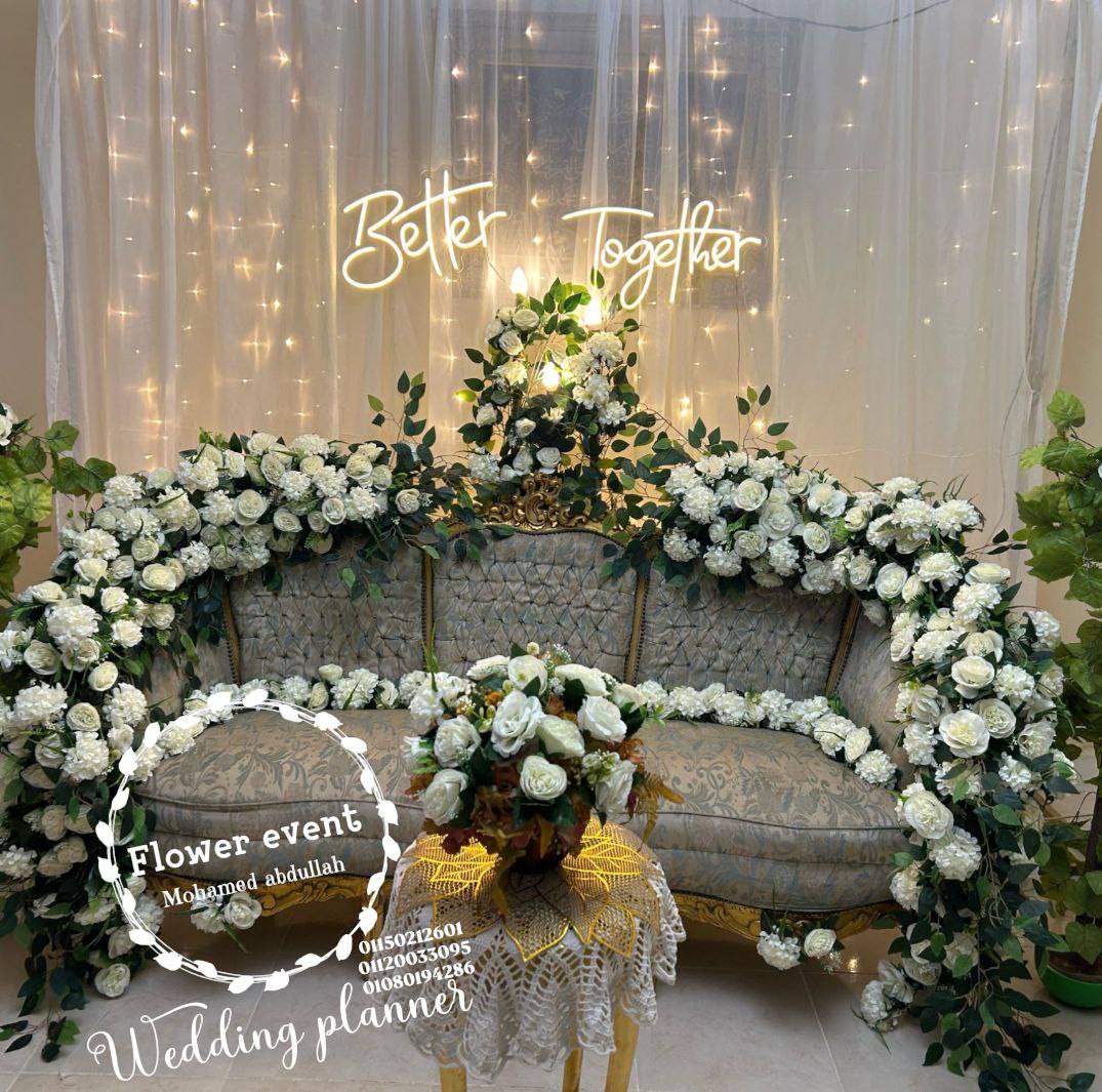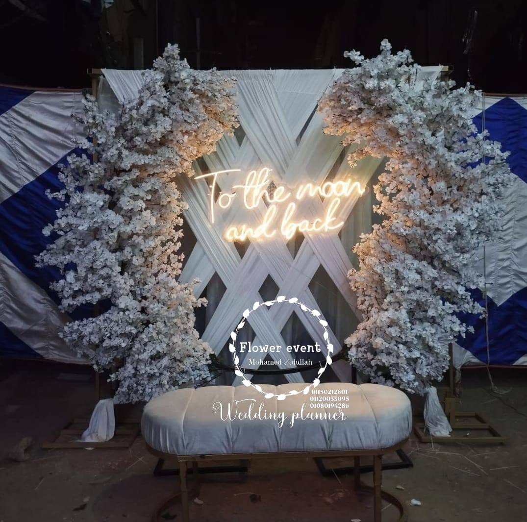Flower Event كمان عندهم خبرة في التعامل مع كل أنواع الأماكن. سواء القاعة كبيرة أو صغيرة، في فندق أو في فيلا، أو حتى فرح في مكان مفتوح، بيعرفوا يظبطوا الديكور حسب طبيعة المكان. لو الفرح في الهواء الطلق، بيضيفوا لمسات من الإضاءة الدافئة والورد الأبيض علشان الجو يبقى رومانسي، ولو الفرح في قاعة فخمة بيختاروا تصميم بسيط يبرز جمال المكان من غير ما يطغى عليه.