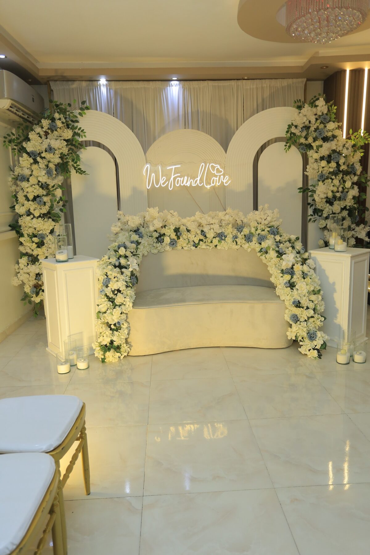 الديكور عند Aya Wedding Planner دايمًا ليه طابع أنيق وراقي. بتحب تعتمد على البساطة اللي فيها لمسة فخامة، وتختار ألوان متناغمة تريح العين وتدي إحساس بالرومانسية. الكوشة عندها دايمًا بتكون فيها ورد طبيعي وإضاءة دافية، والطاولات بتتنسق بذوق عالي جدًا، والزهور بتتوزع بعناية علشان المكان كله يبان متناغم ومتوازن. أما ركن التصوير فبيتعامل كأنه لوحة فنية تتكلم عن العروسين بلغة الألوان والضوء.