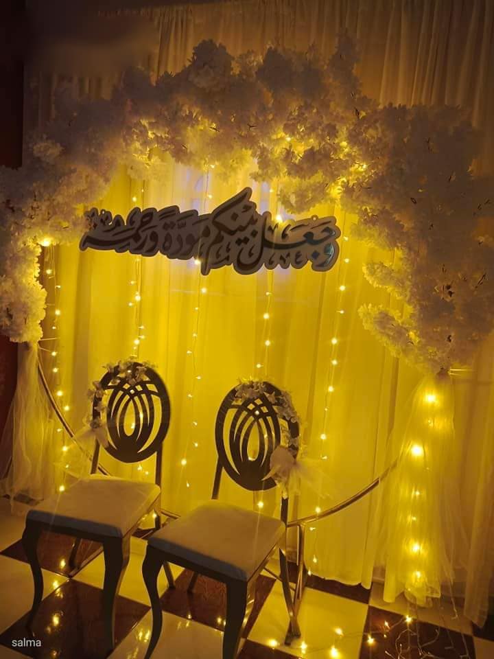 الإضاءة عندها ليها دور أساسي في كل تصميم. بتتعامل معاها كأنها عنصر من عناصر الديكور، مش مجرد وسيلة إنارة. الإضاءة الخافتة وقت الرقصة الأولى بتخلي اللحظة ساحرة، والإضاءة القوية وقت الزفة بتدي حيوية وطاقة للمكان. كمان بتعرف توازن بين الألوان علشان الصور والفيديوهات يطلعوا بأفضل شكل ممكن.