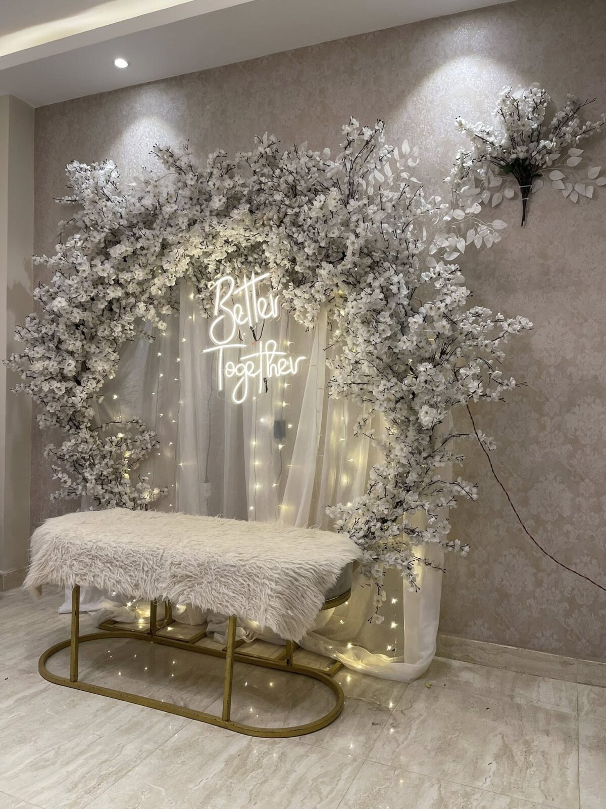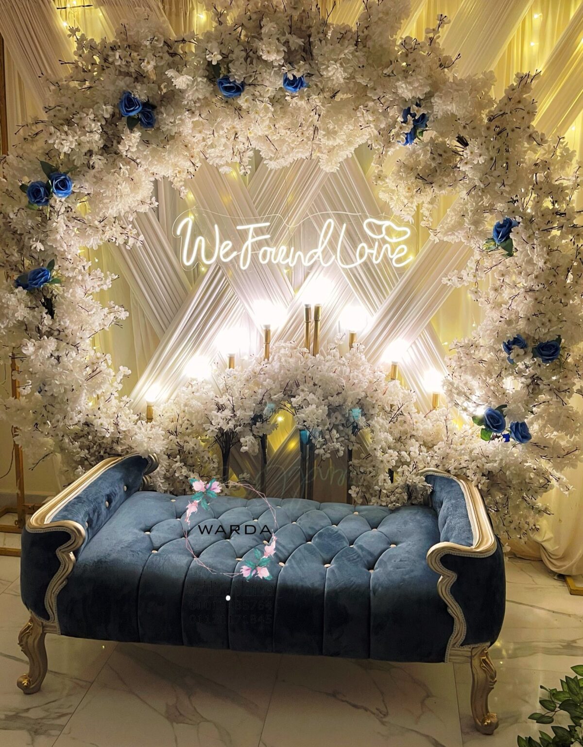 الإضاءة عند Warda مش مجرد وسيلة إنارة، لكنها جزء من التصميم. بتحب توظف الإضاءة في كل لحظة على حسب المود العام. في الرقصة الأولى بتخلي النور هادي ورومانسي، وفي فقرات الاحتفال بتكون الإضاءة مليانة حركة وألوان. النتيجة إن اليوم كله بيكون متنوع ومليان حياة، وكل لحظة ليها طابعها المختلف.