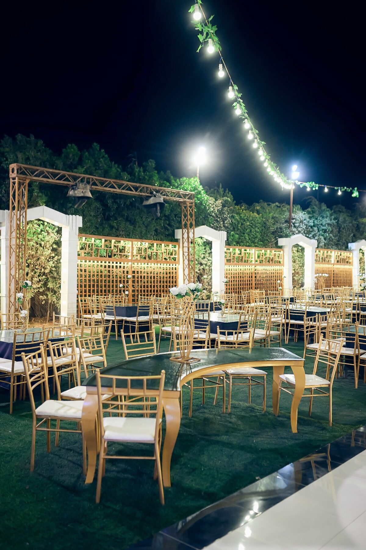 الإضاءة داخل القاعة عنصر أساسي لأنها بتغيّر الإحساس بالمكان من فقرة للتانية. الإضاءة الهادية بتكون مناسبة للحظات الهادية، والإضاءة الأقوى بتدي طاقة وقت الاحتفال. التنوع في الإضاءة مع تقسيم الفور سيشن بيساعد إن كل جزء من الفرح يبقى ليه جوه الخاص، وده بيدي إحساس بالتجديد طول الليلة.