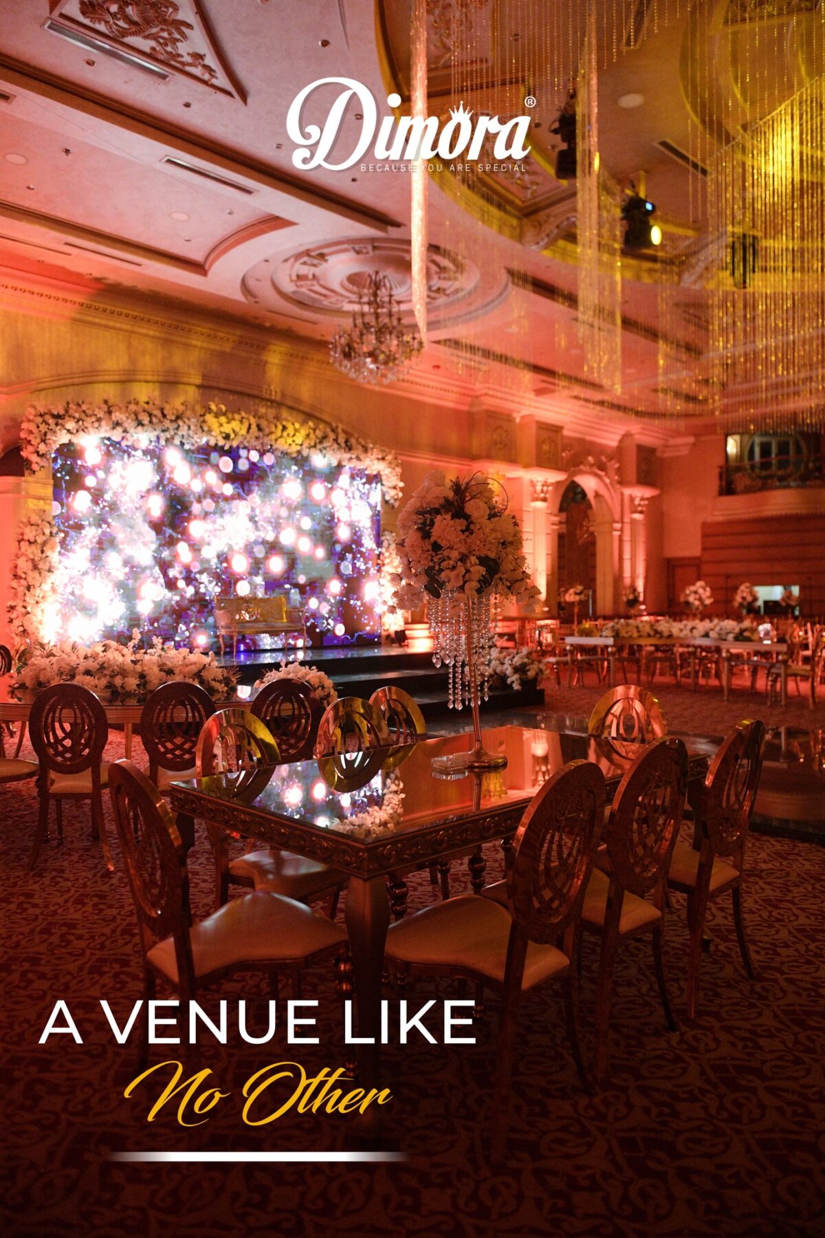 Dimora من الأماكن اللي أول ما تدخلها تحس إن ليها شخصية واضحة وشكل راقي من غير ما تعتمد على ديكورات تقيلة أو تفاصيل مزعجة. المكان ليه ستايل مودرن هادي، وده بيخلي أي فرح يتعمل هناك يبقى شكله أنيق ومتناسق من أول لحظة لحد آخر الأغنية. Dimora معمولة بروح العرايس والعرايس اللي بيحبوا البساطة على أصولها، واللي عايزين يوم جميل وسهل وفي نفس الوقت شكله شيك ومبهر في الصور.